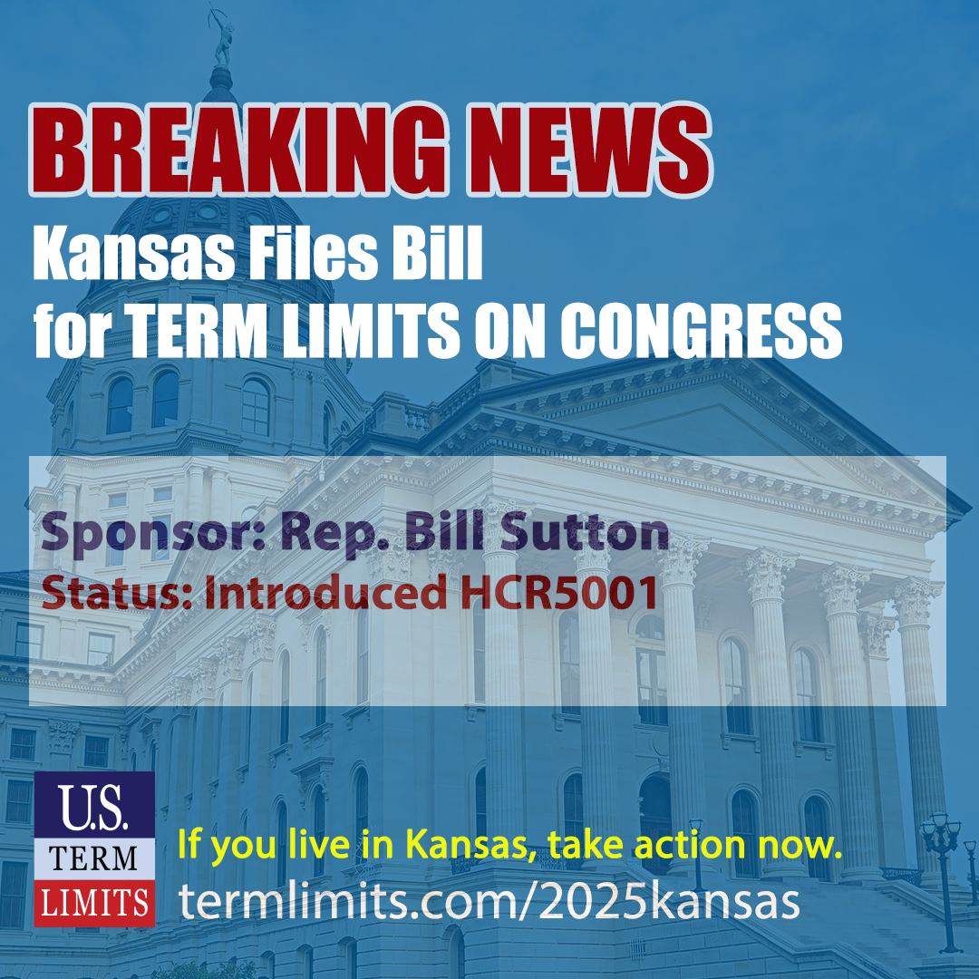 Topeka, KS – Representative Bill Sutton (district 43) has filed House Concurrent Resolution 5001 (HCR5001) for Kansas to join the states calling for a convention for proposing a congressional term limits amendment to the U.S. Constitution. The effort is being spearheaded by the nonpartisan, nonprofit, U.S. Term Limits (USTL).
