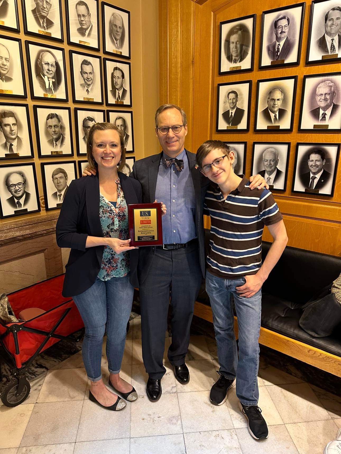 U.S. Term Limits presented Rep. Lewis with the “Champion of Term Limits” plaque, which reads, “In recognition of a steadfast commitment to restore citizen government through term limits.” The U.S. Term Limits Article V convention application is limited to proposing an amendment to set a limit on the number of terms that a person may be elected as a member of the U.S. House and Senate. The Article V convention application does not specify the number of terms as that will be determined by the commissioners appointed to the convention by the state legislatures.