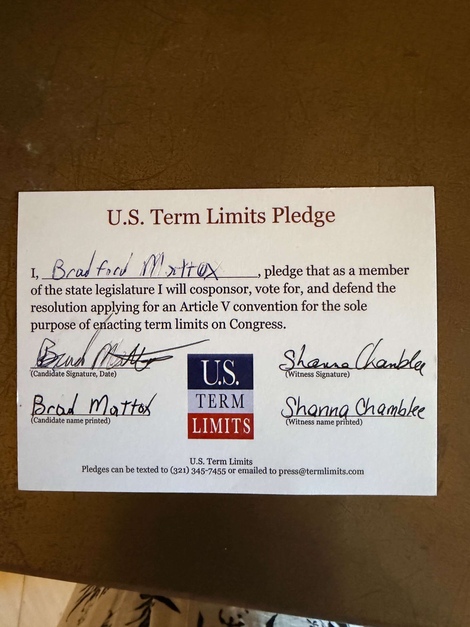 Rep. Brad Mattox Pledges to Support Congressional Term Limits