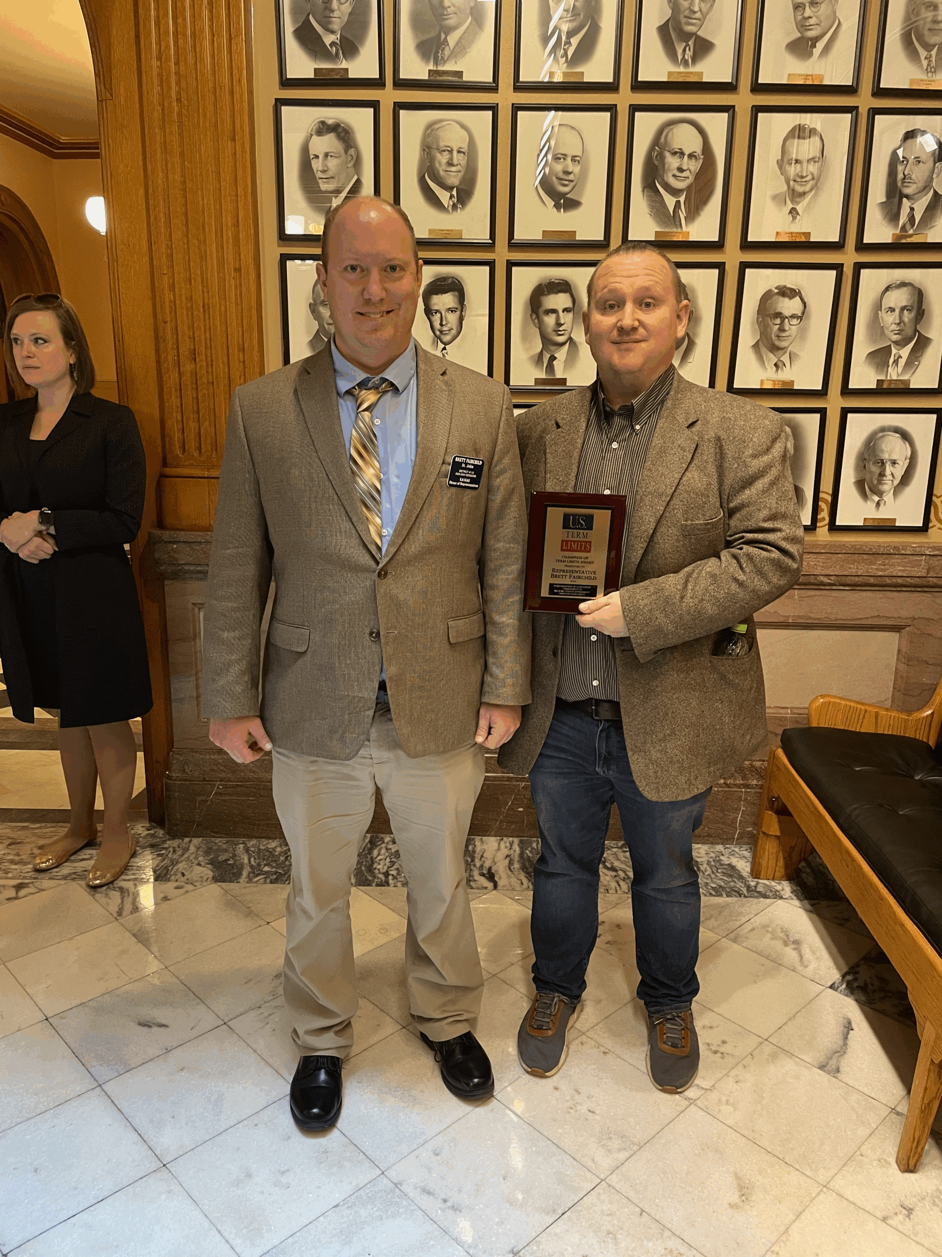 U.S. Term Limits presented Rep. Fairchild with the “Champion of Term Limits” plaque, which reads, “In recognition of a steadfast commitment to restore citizen government through term limits.” The U.S. Term Limits Article V convention application is limited to proposing an amendment to set a limit on the number of terms that a person may be elected as a member of the U.S. House and Senate. The Article V convention application does not specify the number of terms as that will be determined by the commissioners appointed to the convention by the state legislatures.