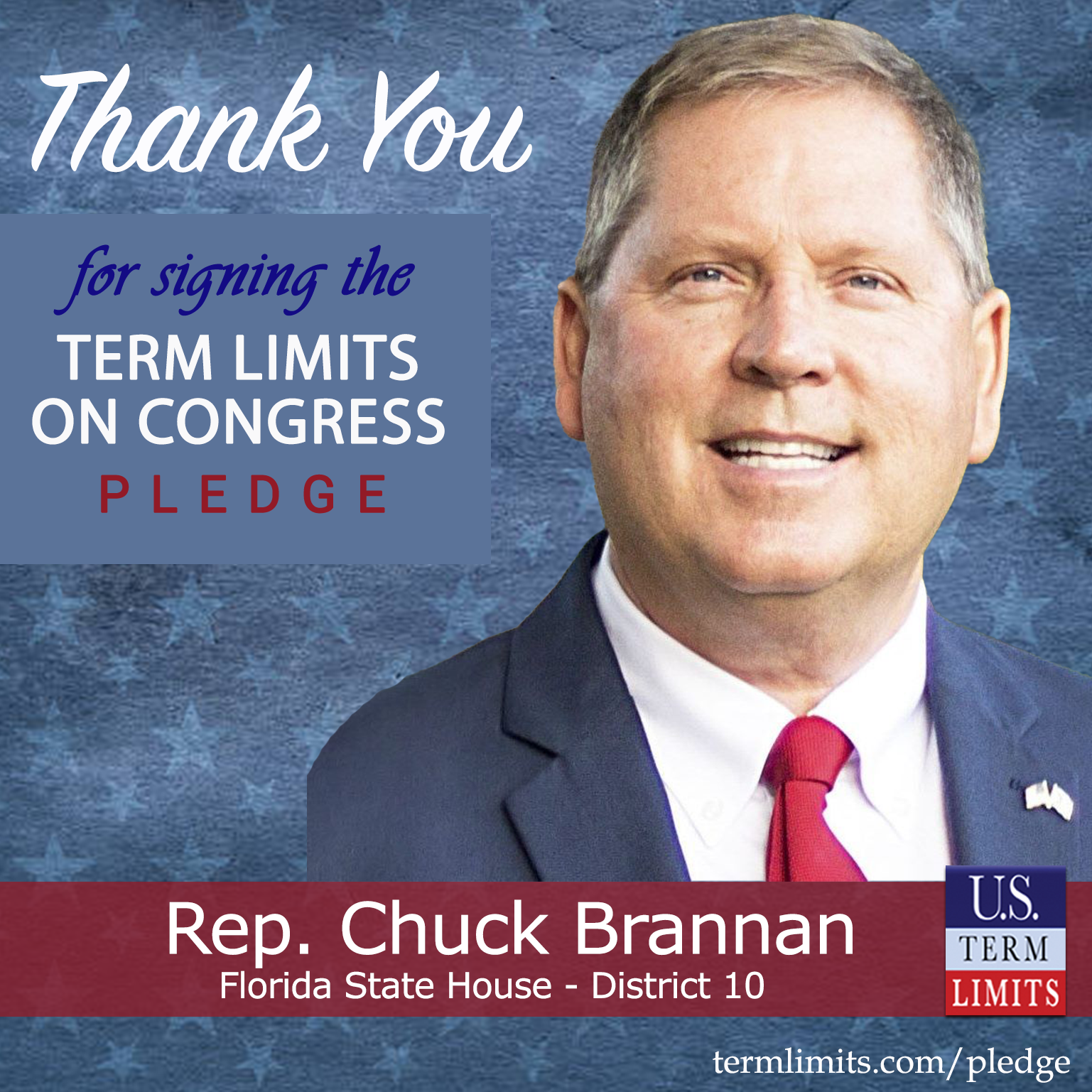 USTL President, Philip Blumel, commented on Brannan’s pledge saying, “Chuck’s strong support of term limits shows that there are individuals who are willing to listen to the majority of voters who want term limits. America needs a Congress that will be served by citizen legislators, not career politicians.”