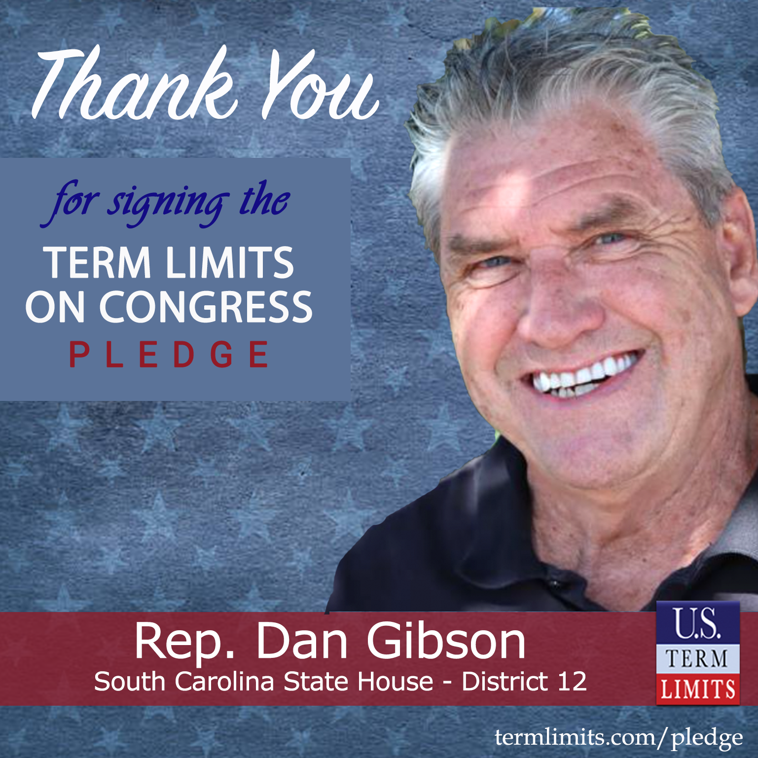 USTL President, Philip Blumel, commented on Gibson’s pledge saying, “Dan’s strong support of term limits shows that there are individuals who are willing to listen to the majority of voters who want term limits. America needs a Congress that will be served by citizen legislators, not career politicians.”