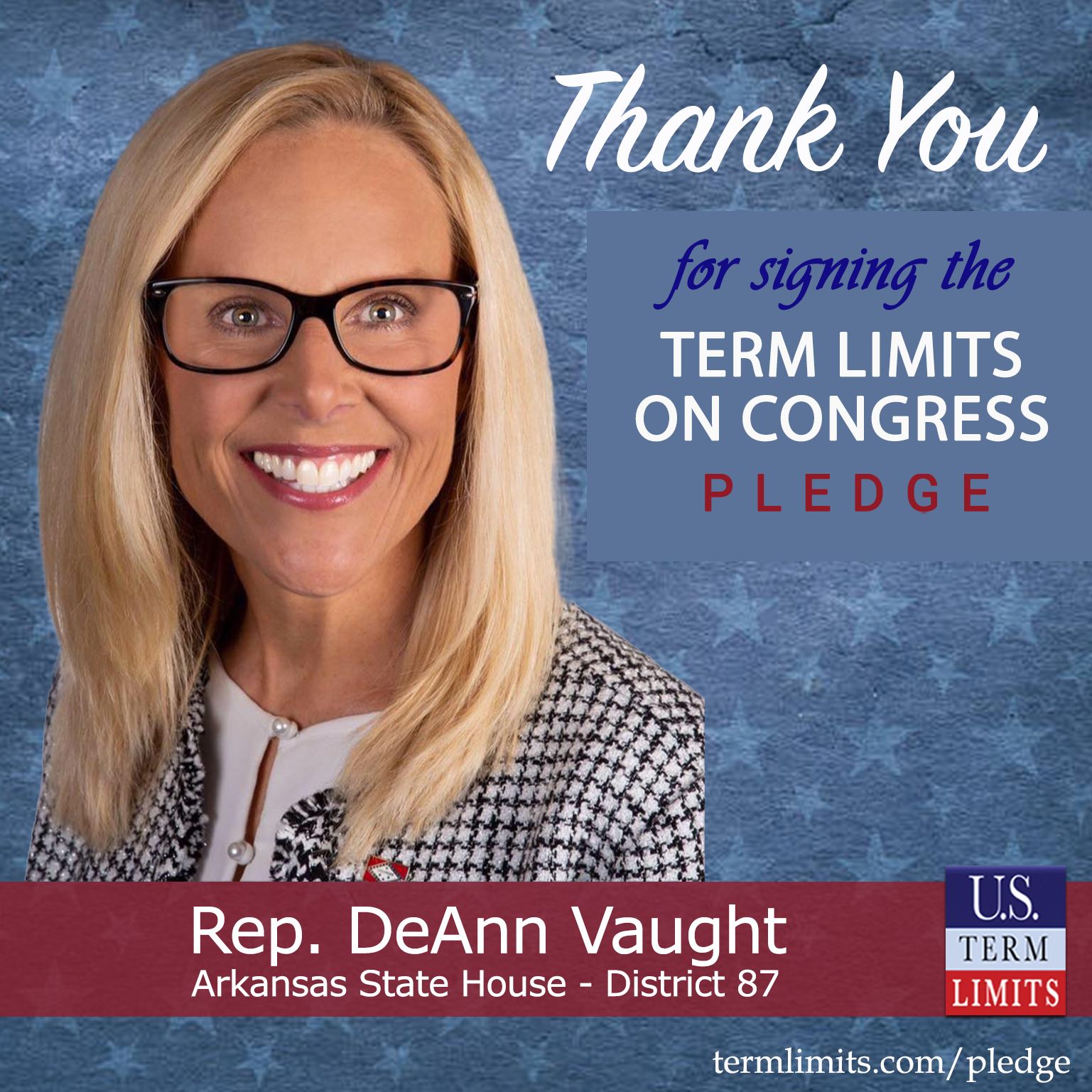 USTL President, Philip Blumel, commented on Vaught’s pledge saying, “DeAnn’s strong support of term limits shows that there are individuals who are willing to listen to the majority of voters who want term limits. America needs a Congress that will be served by citizen legislators, not career politicians.”