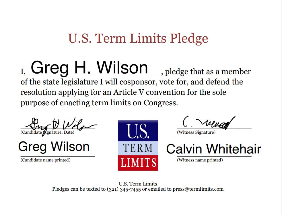 Rep. Greg Wilson Pledges to Support Congressional Term Limits