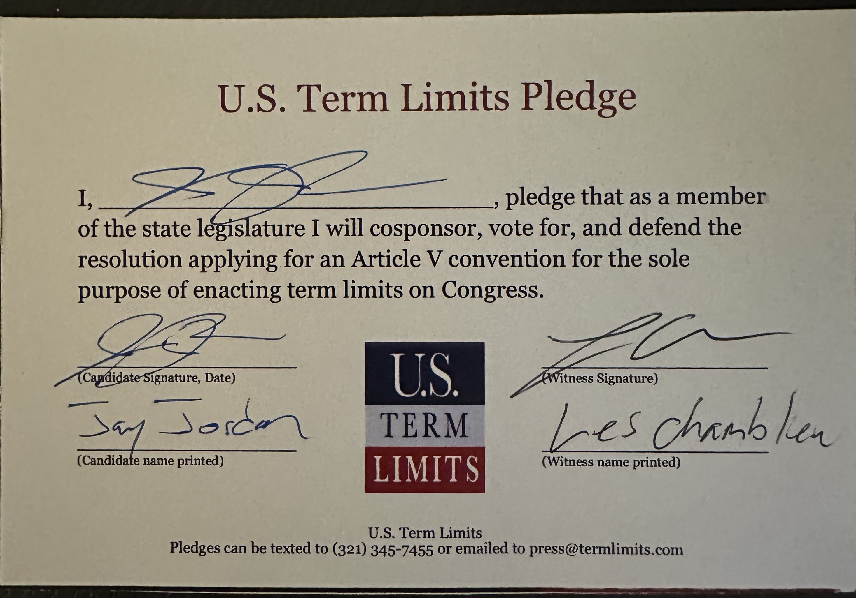 Rep. Jay Jordan Pledges to Support Congressional Term Limits