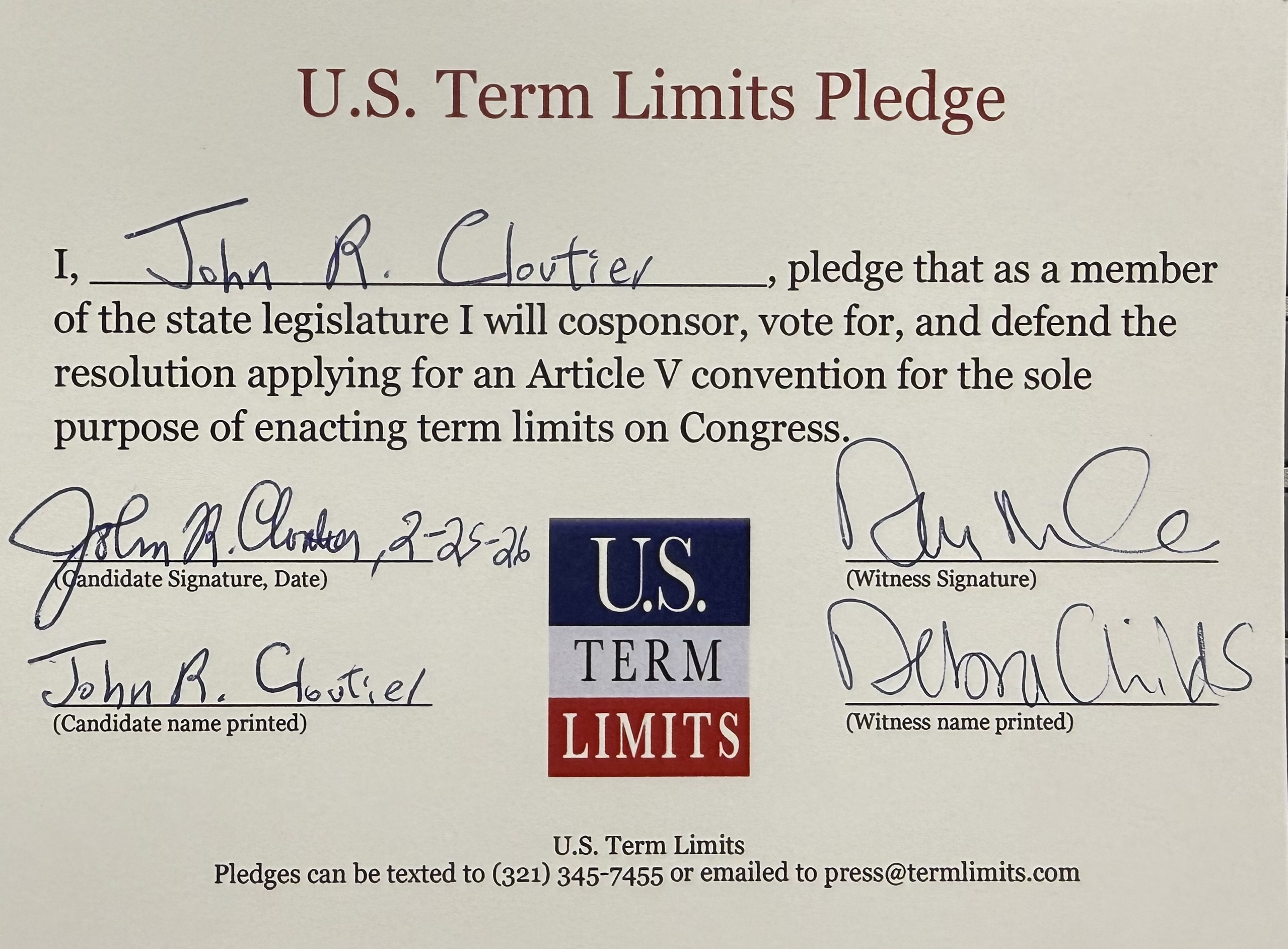 Rep. John Cloutier Pledges to Support Congressional Term Limits