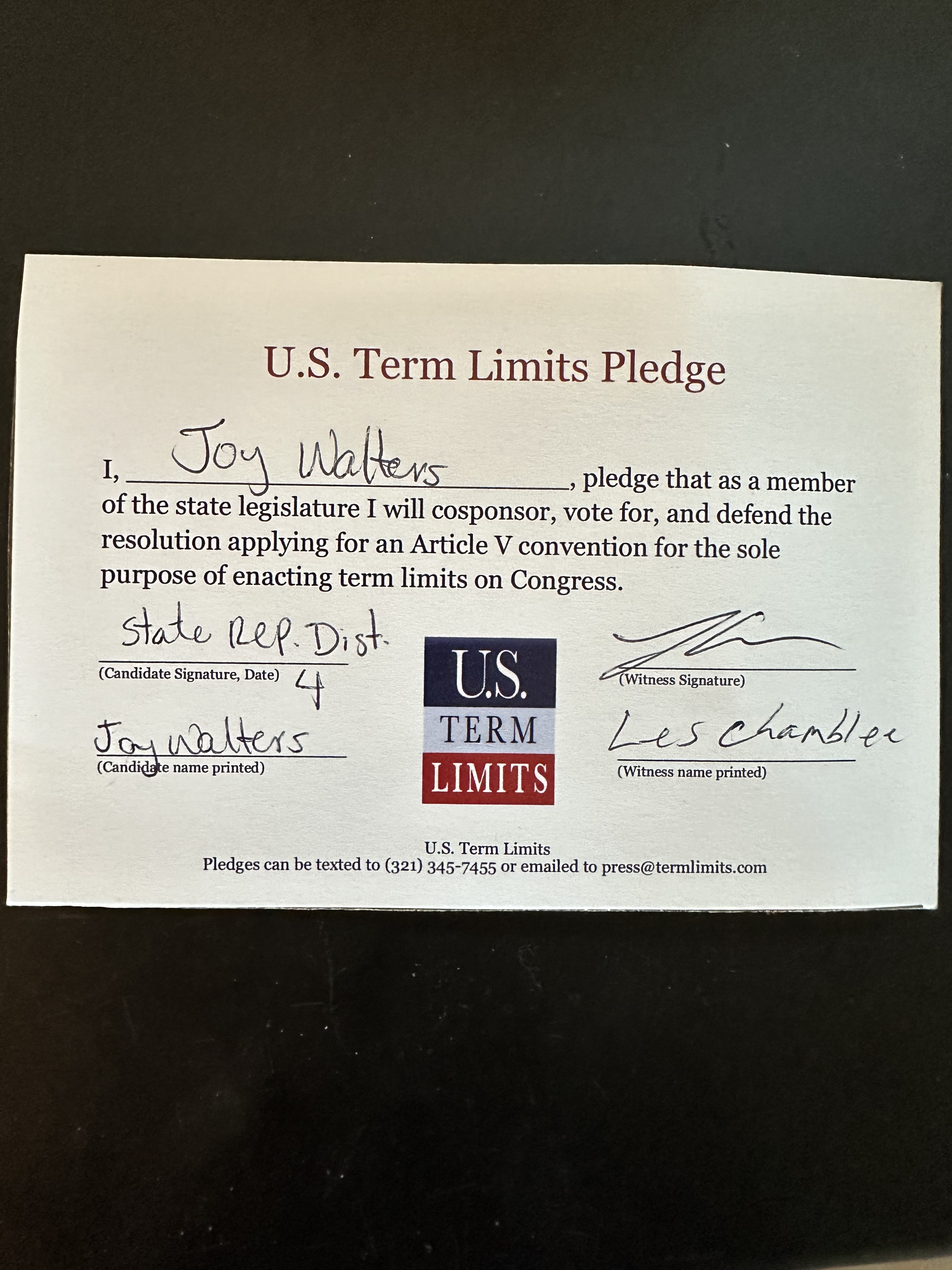Rep. Joy Walters Pledges to Support Congressional Term Limits