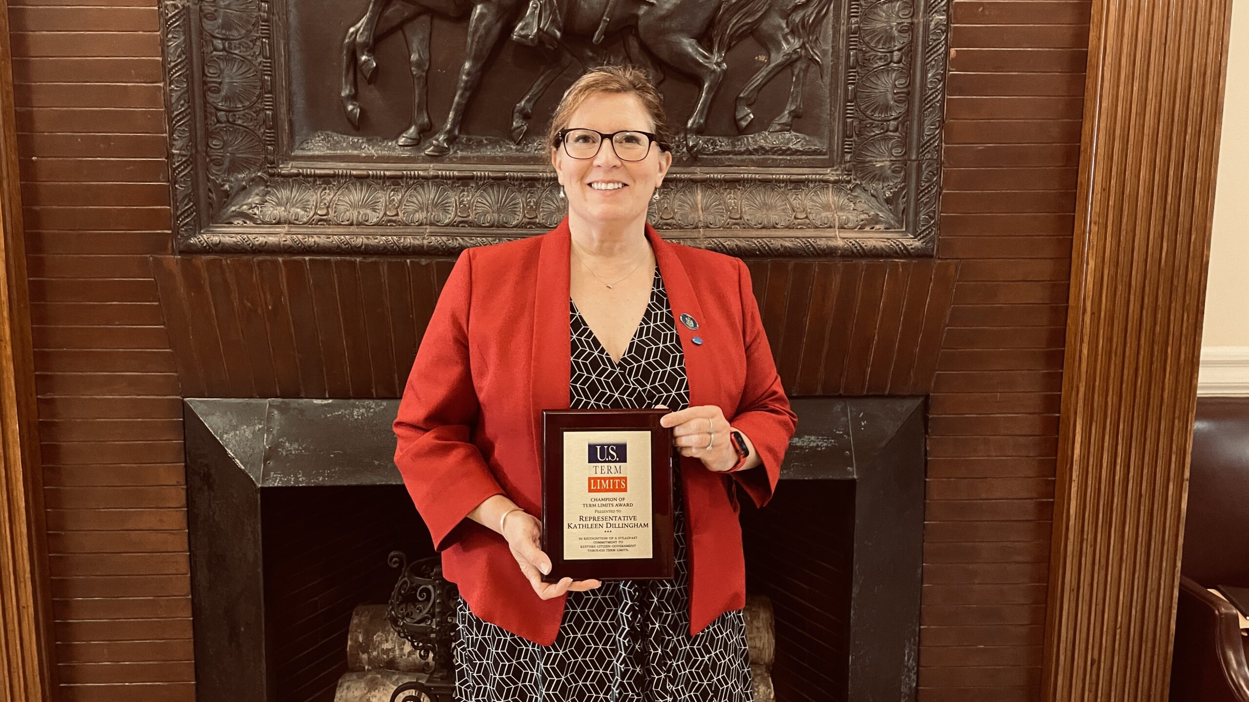 U.S. Term Limits Northern Regional Director, Kenn Quinn, presented her with a plaque at the Maine State House in Augusta. “Rep. Dillingham is a real believer in this reform to have the state legislatures use their authority under Article V of the U.S.Constitution to propose a Congressional Term Limits Amendment.”