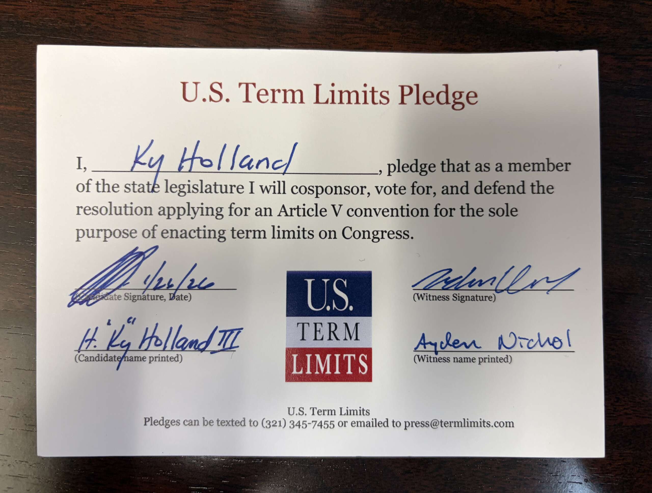 Rep. Ky Holland Pledges to Support Congressional Term Limits