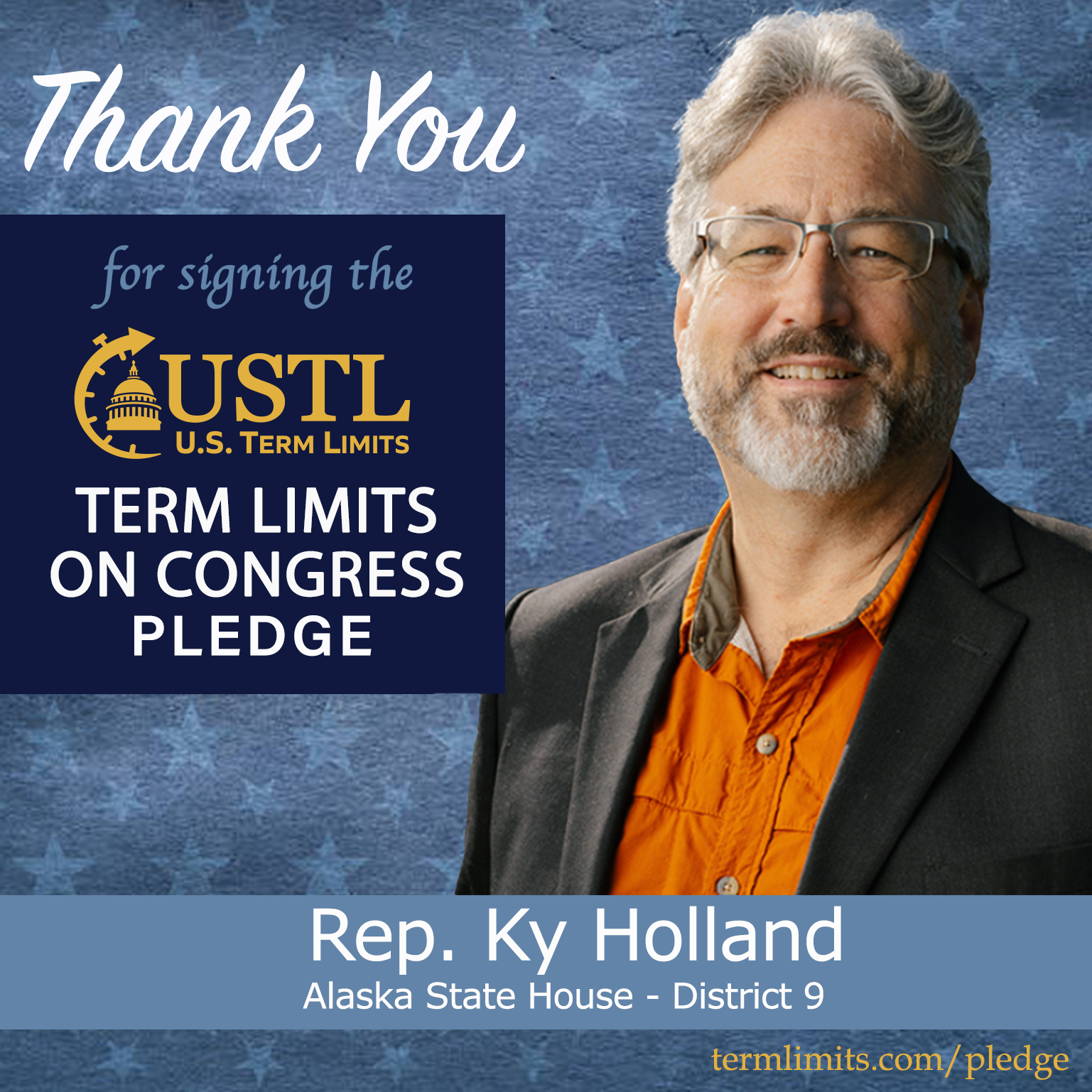 Whittier, AK – U.S. Term Limits (USTL), the leader in the national, non-partisan movement to limit terms for elected officials, is gathering support from state lawmakers across the nation. Its mission is to get 34 states to apply for an amendment proposal convention specific to term limits on Congress. Alaska state Rep. Ky Holland (district 9), has committed support for term limits on Congress by signing the term limits convention pledge.