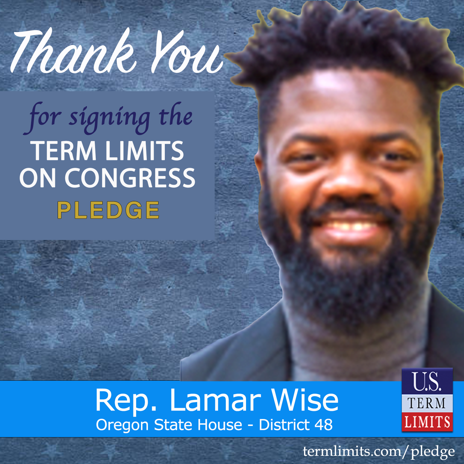 Damascus, OR – U.S. Term Limits (USTL), the leader in the national, non-partisan movement to limit terms for elected officials, is gathering support from state lawmakers across the nation. Its mission is to get 34 states to apply for an amendment proposal convention specific to term limits on Congress. 2025 Oregon state house Rep. Lamar Wise (district 48), has committed support for term limits on Congress by signing the term limits convention pledge.