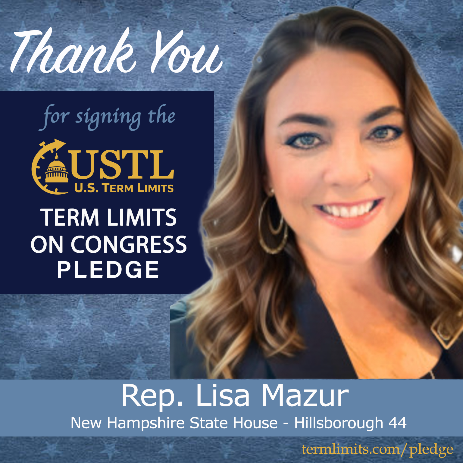 Goffstown, NH – U.S. Term Limits (USTL), the leader in the national, non-partisan movement to limit terms for elected officials, is gathering support from state lawmakers across the nation. Its mission is to get 34 states to apply for an amendment proposal convention specific to term limits on Congress. New Hampshire state house Rep. Lisa Mazur (Hillsborough 44), has committed support for term limits on Congress by signing the term limits convention pledge.