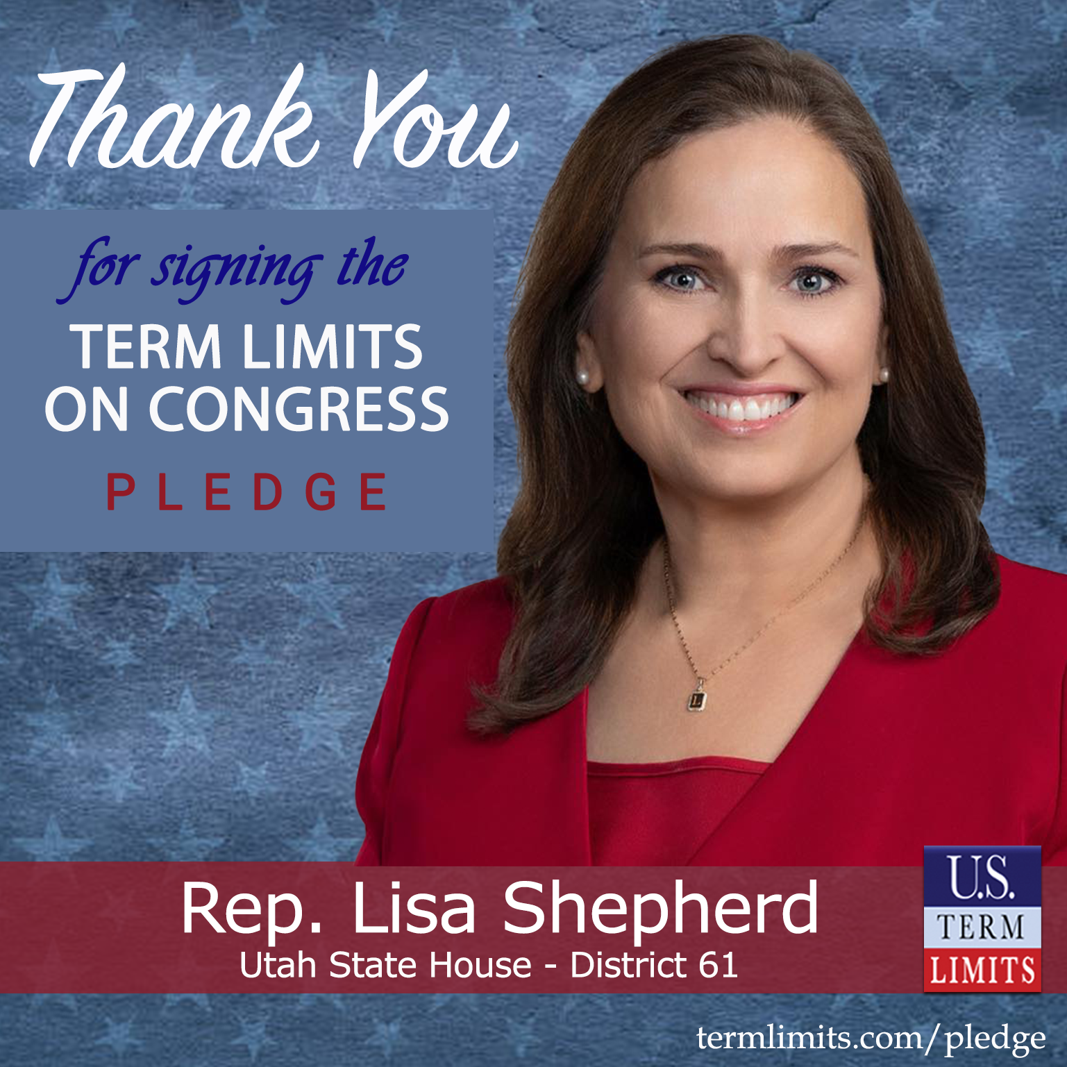 Provo, UT – U.S. Term Limits (USTL), the leader in the national, non-partisan movement to limit terms for elected officials, is gathering support from state lawmakers across the nation. Its mission is to get 34 states to apply for an amendment proposal convention specific to term limits on Congress. 2025 Utah state house Rep. Lisa Shepherd (district 61), has committed support for term limits on Congress by signing the term limits convention pledge.