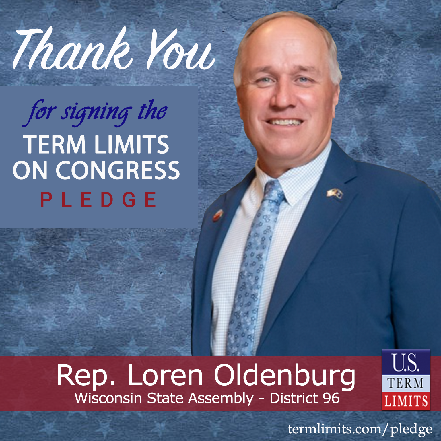 Viroqua, WI – U.S. Term Limits (USTL), the leader in the national, non-partisan movement to limit terms for elected officials, is gathering support from state lawmakers across the nation. Its mission is to get 34 states to apply for an amendment proposal convention specific to term limits on Congress. Wisconsin state assembly Rep. Loren Oldenburg (District 96), has committed support for term limits on Congress by signing the term limits convention pledge.
