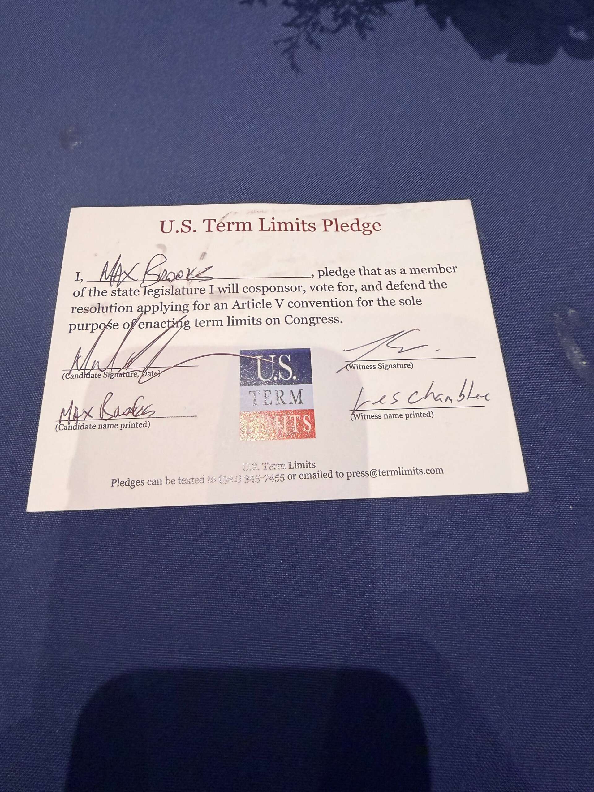 Rep. Max Brooks Pledges to Support Congressional Term Limits