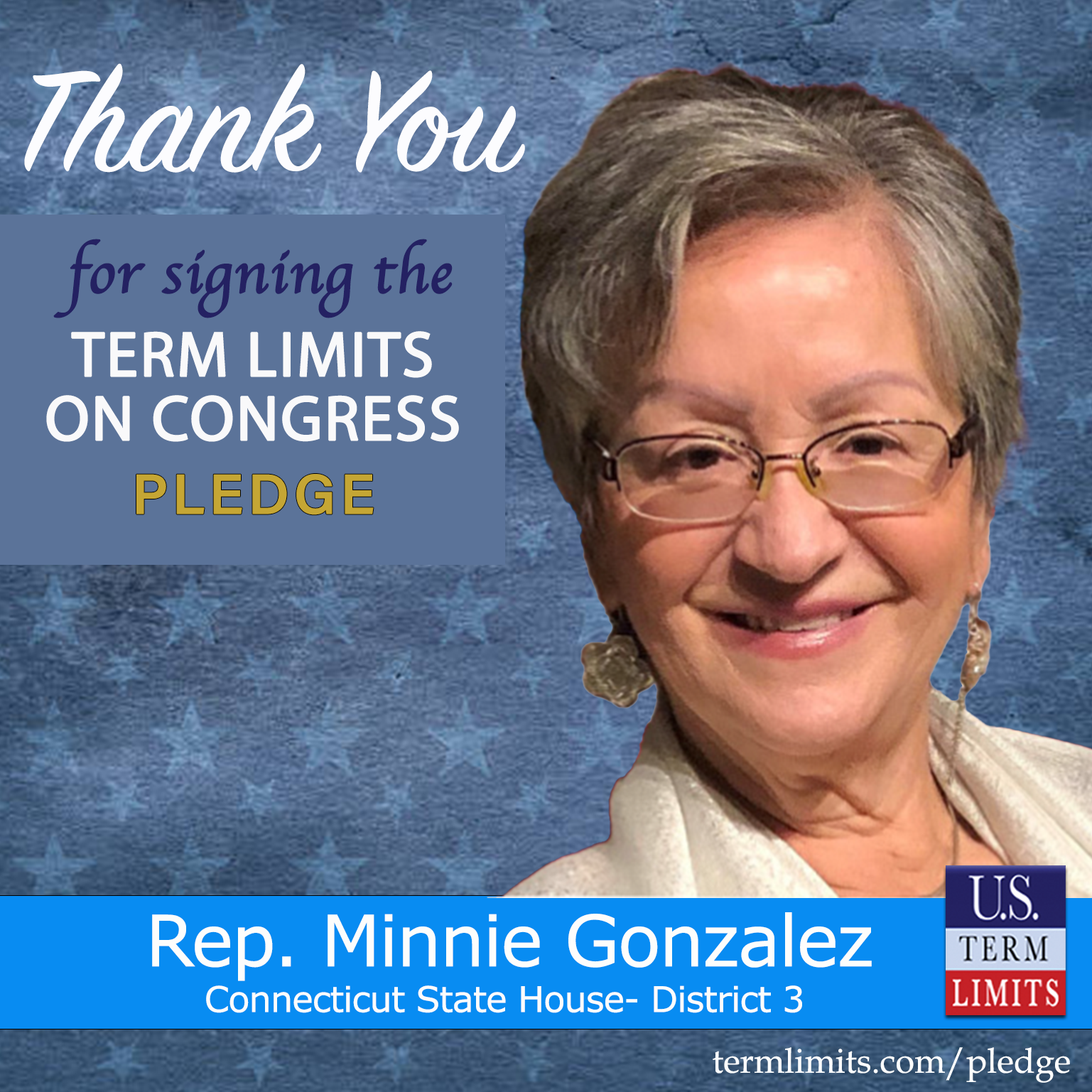 Hartford, CT – U.S. Term Limits (USTL), the leader in the national, non-partisan movement to limit terms for elected officials, is gathering support from state lawmakers across the nation. Its mission is to get 34 states to apply for an amendment proposal convention specific to term limits on Congress. 2026 Connecticut state house Rep. Minnie Gonzalez (district 3), has committed support for term limits on Congress by signing the term limits convention pledge.