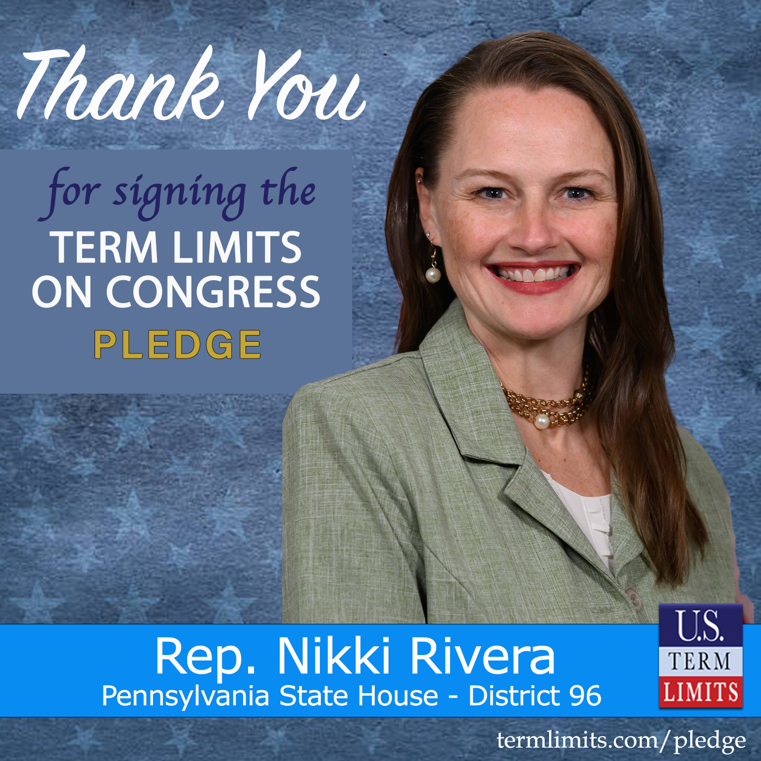 Lancaster, PA – U.S. Term Limits (USTL), the leader in the national, non-partisan movement to limit terms for elected officials, is gathering support from state lawmakers across the nation. Its mission is to get 34 states to apply for an amendment proposal convention specific to term limits on Congress. 2025 Pennsylvania state house Rep. Nikki Rivera (district 96), has committed support for term limits on Congress by signing the term limits convention pledge.