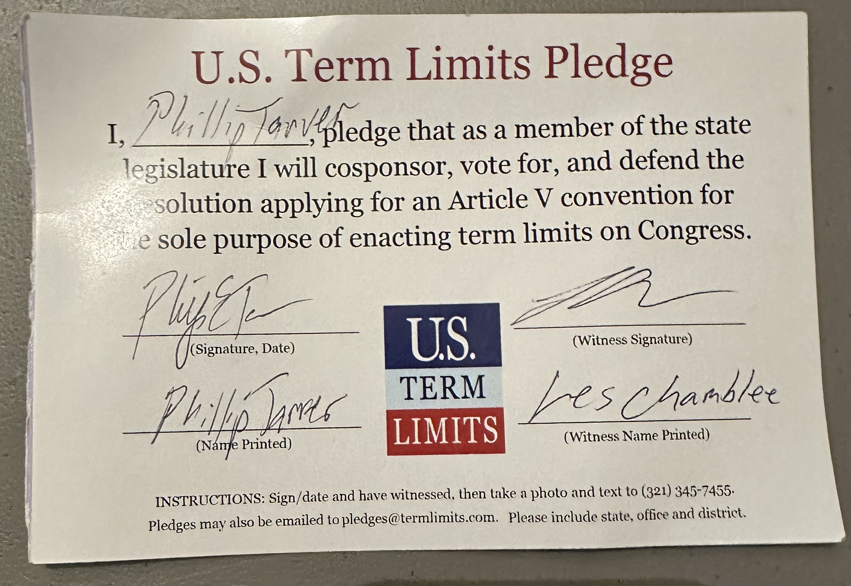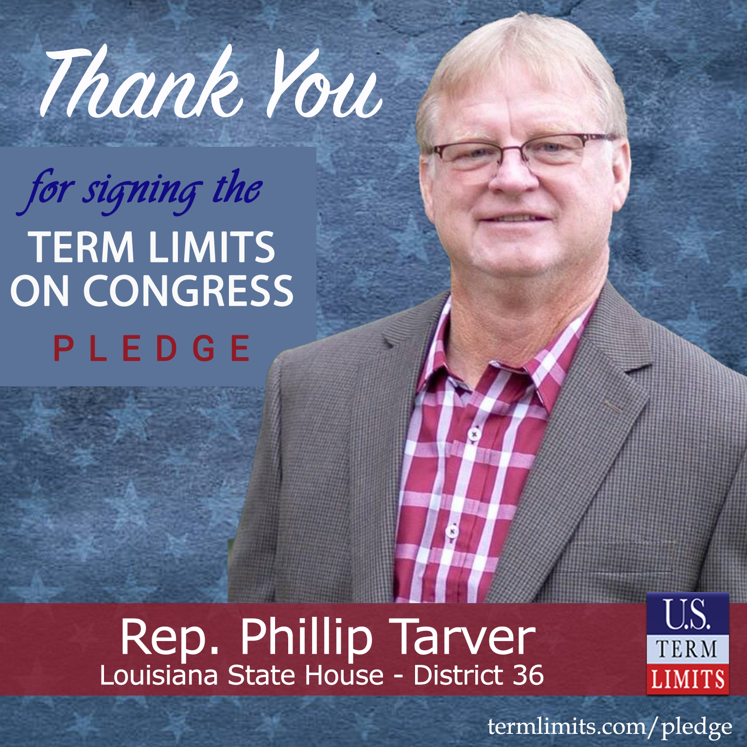 USTL President, Philip Blumel, commented on Tarver’s pledge saying, “Phillip’s strong support of term limits shows that there are individuals who are willing to listen to the majority of voters who want term limits. America needs a Congress that will be served by citizen legislators, not career politicians.”