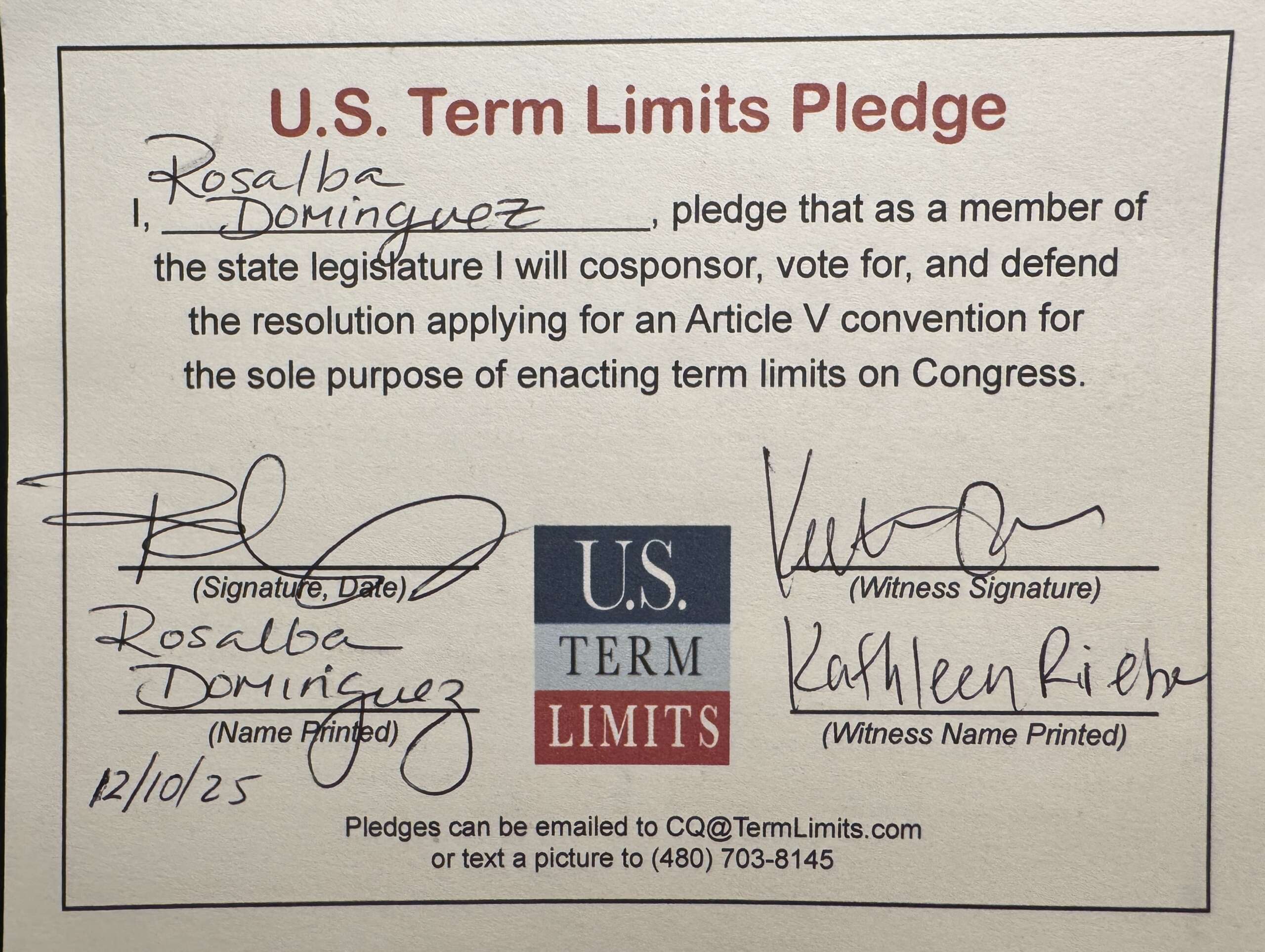 Rep. Rosalba Dominguez Pledges to Support Congressional Term Limits