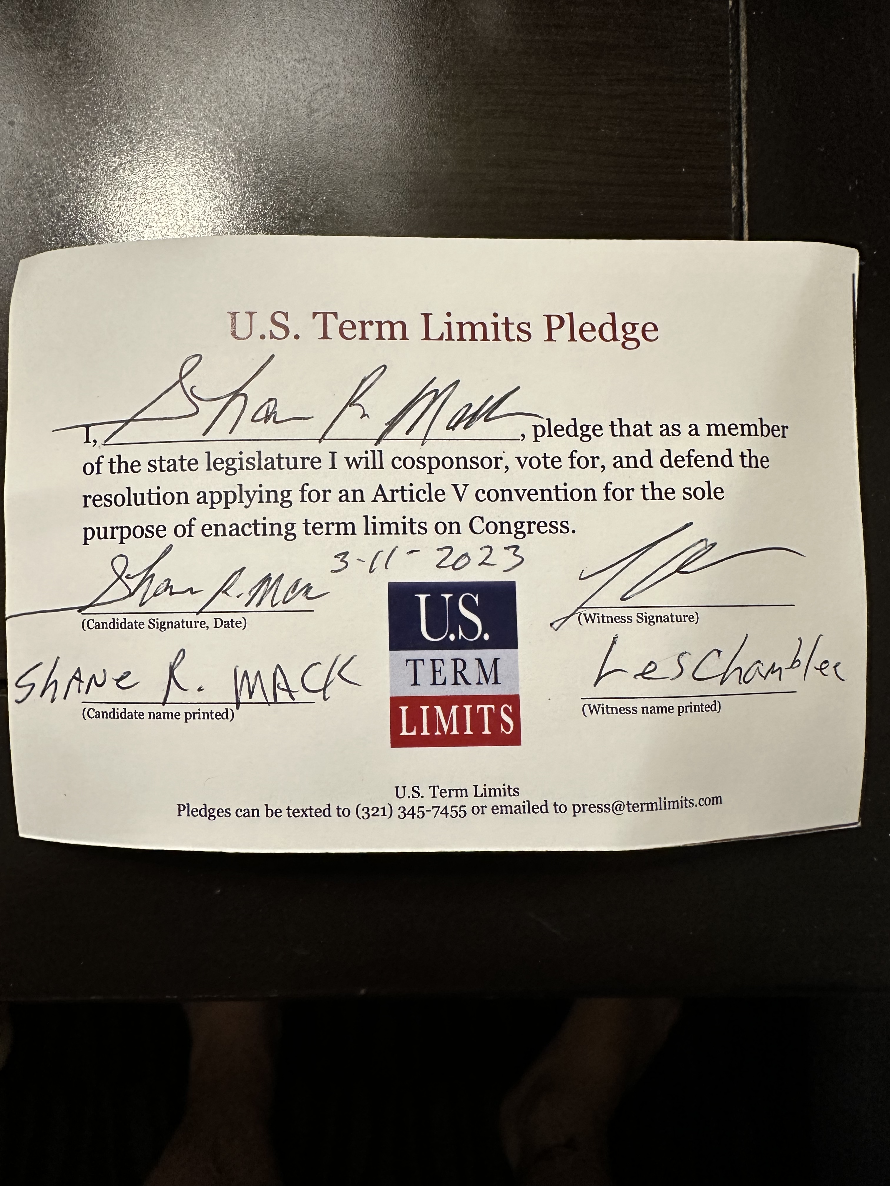 Rep. Shane Mack Pledges to Support Congressional Term Limits