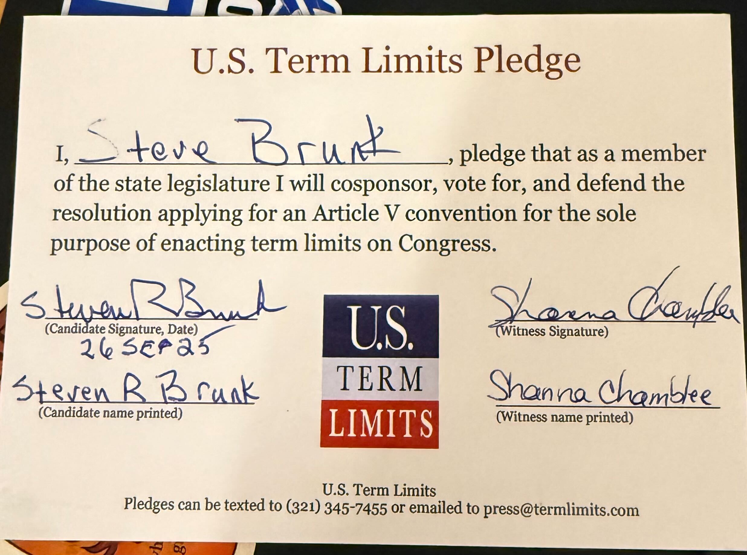 Rep. Steve Brunk Pledges to Support Congressional Term Limits