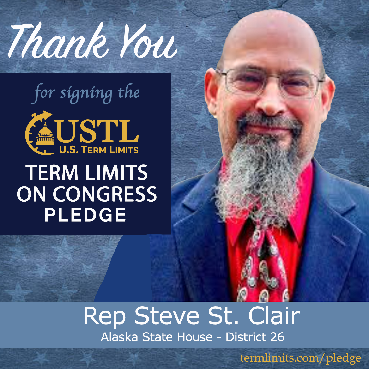 Wasilla, AK – U.S. Term Limits (USTL), the leader in the national, non-partisan movement to limit terms for elected officials, is gathering support from state lawmakers across the nation. Its mission is to get 34 states to apply for an amendment proposal convention specific to term limits on Congress. 2026 Arizona state house Rep. Steve St. Clair (district 26), has committed support for term limits on Congress by signing the term limits convention pledge.
