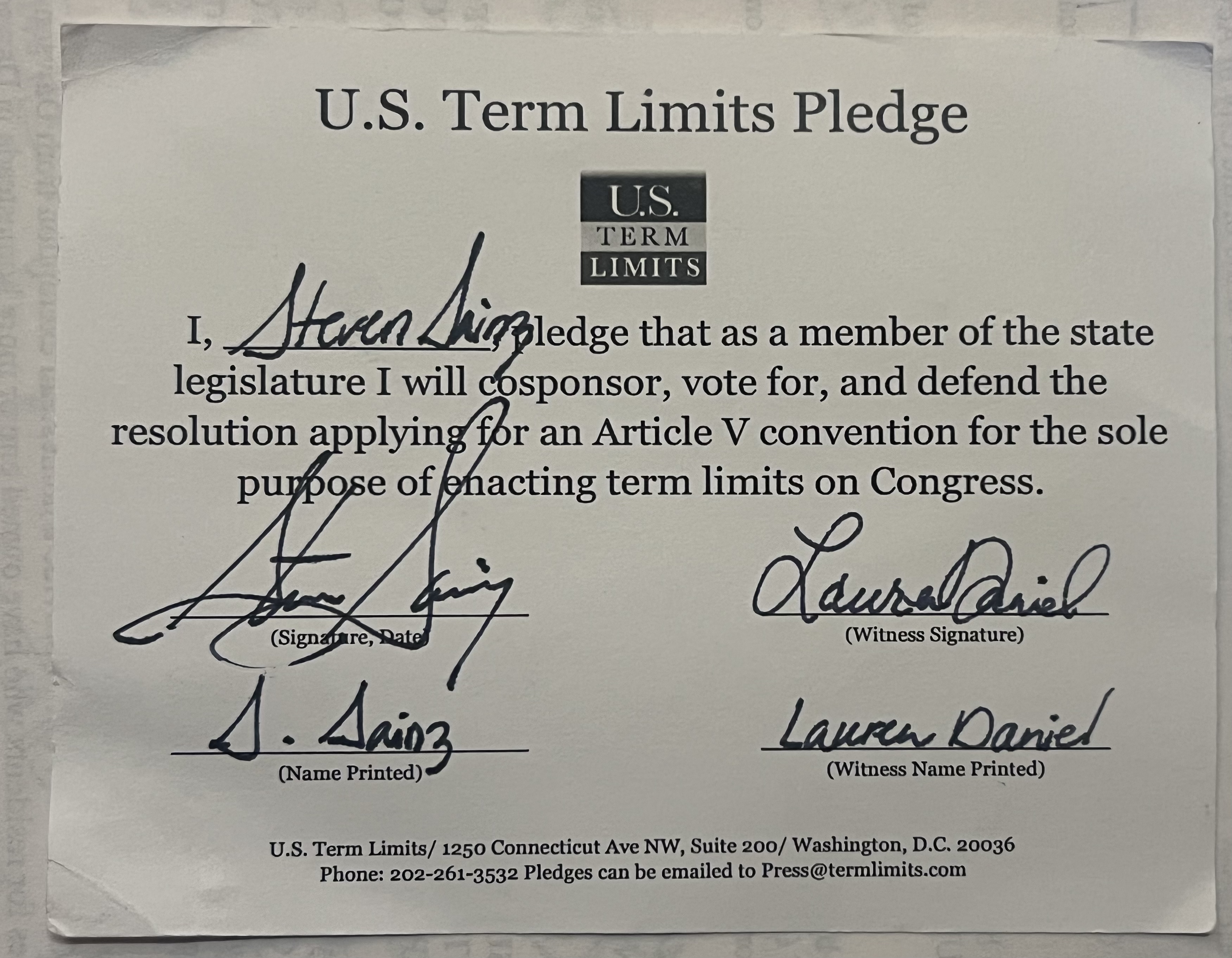 Rep. Steven Sainz Pledges to Support Congressional Term Limits