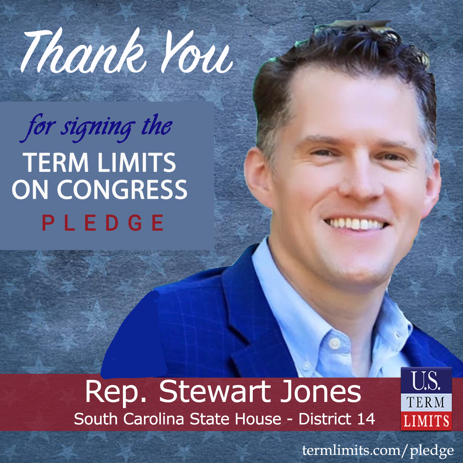 USTL President, Philip Blumel, commented on Jones’s pledge saying, “Stewart’s strong support of term limits shows that there are individuals who are willing to listen to the majority of voters who want term limits. America needs a Congress that will be served by citizen legislators, not career politicians.”