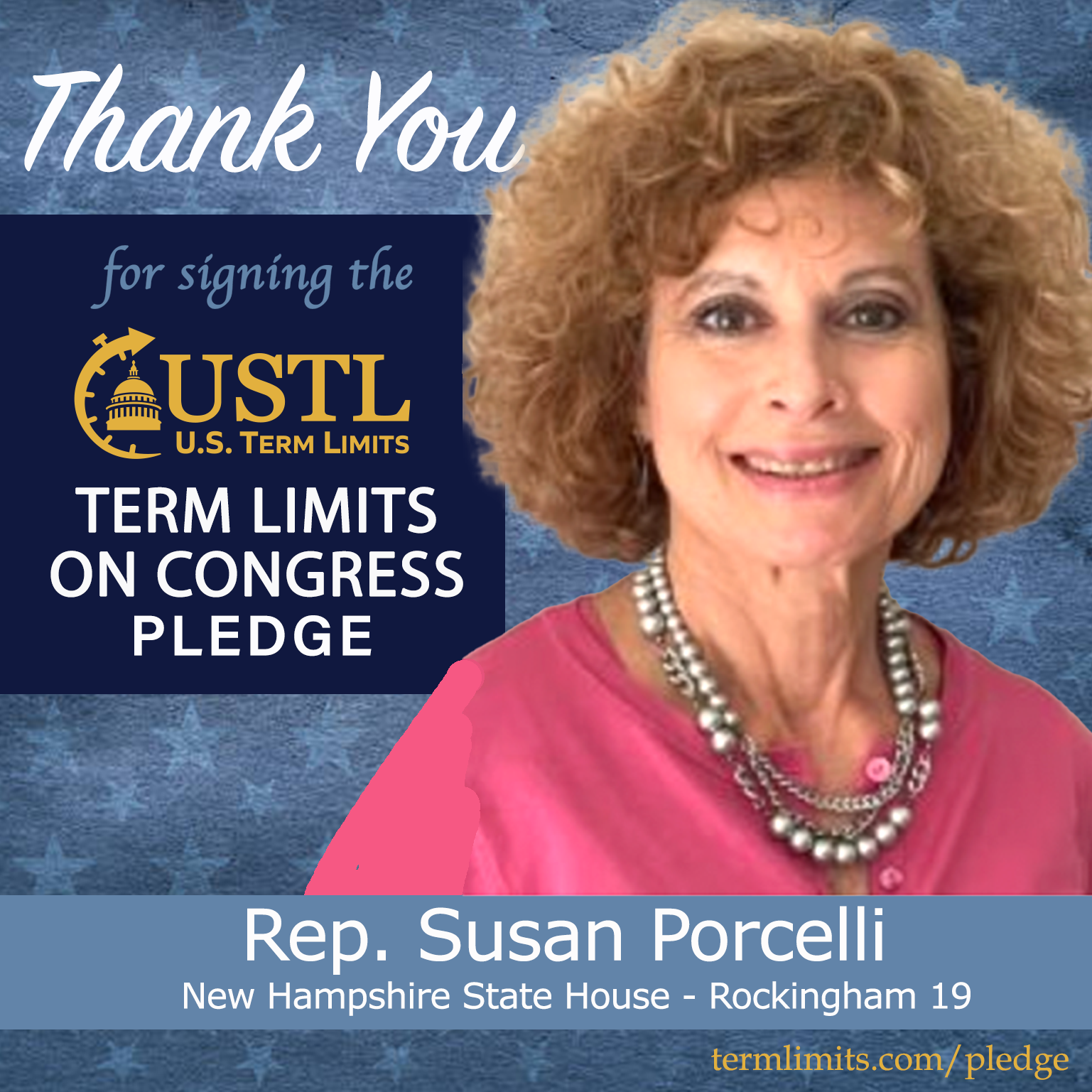 Hampton Falls, NH – U.S. Term Limits (USTL), the leader in the national, non-partisan movement to limit terms for elected officials, is gathering support from state lawmakers across the nation. Its mission is to get 34 states to apply for an amendment proposal convention specific to term limits on Congress. New Hampshire state Rep. Susan Porcelli (Rockingham 19), has committed support for term limits on Congress by signing the term limits convention pledge.