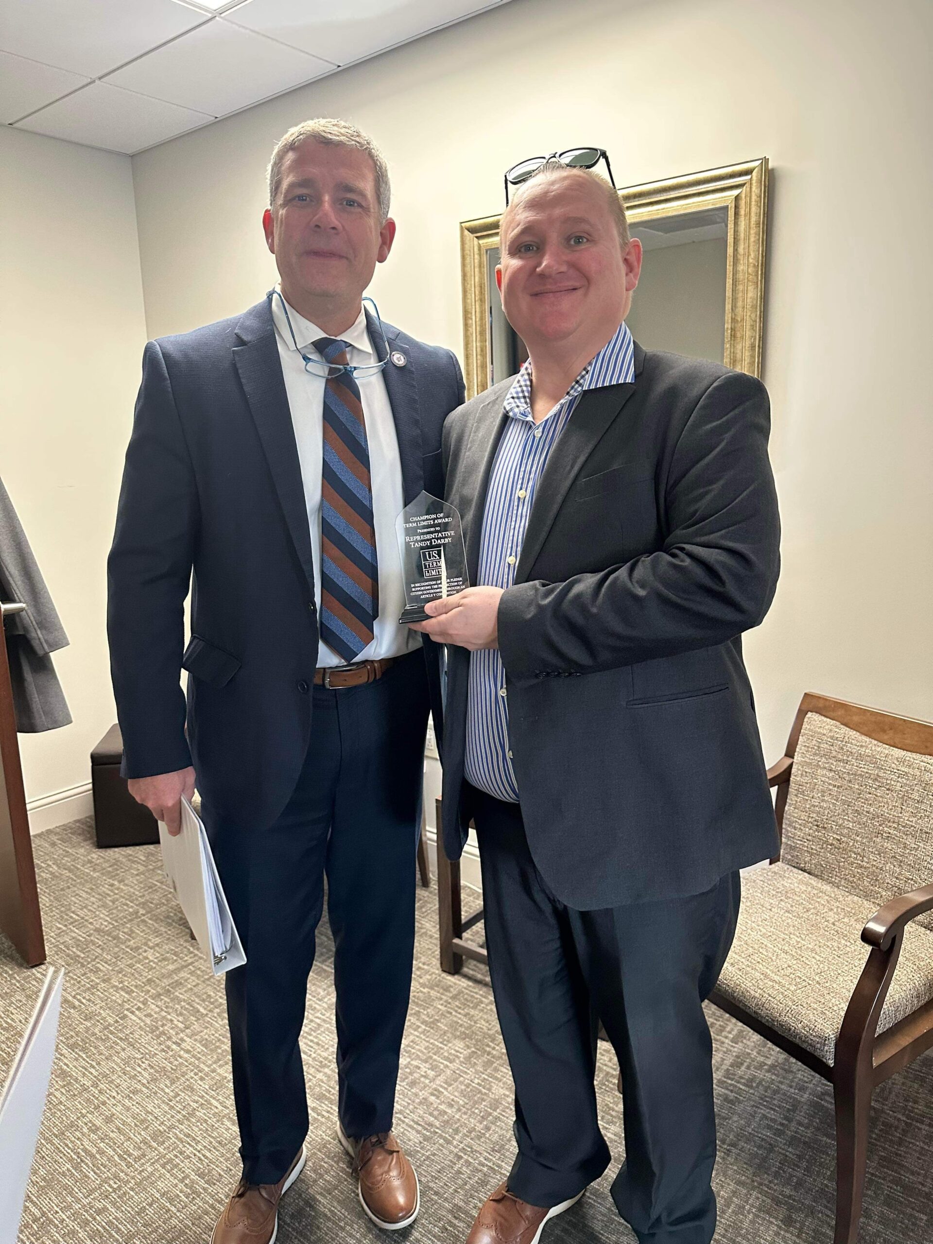 Nashville, TN —Tennessee State Representative Tandy Darby (district 76) was recently recognized for his efforts to support a Term Limits Amendment on Congress. This amendment was created by the U.S. Term Limits Pledge, which states that Tandy Darby will work to cosponsor, vote for, and defend the resolution for an Article V convention, for the sole purpose of enforcing term limits on Congress.