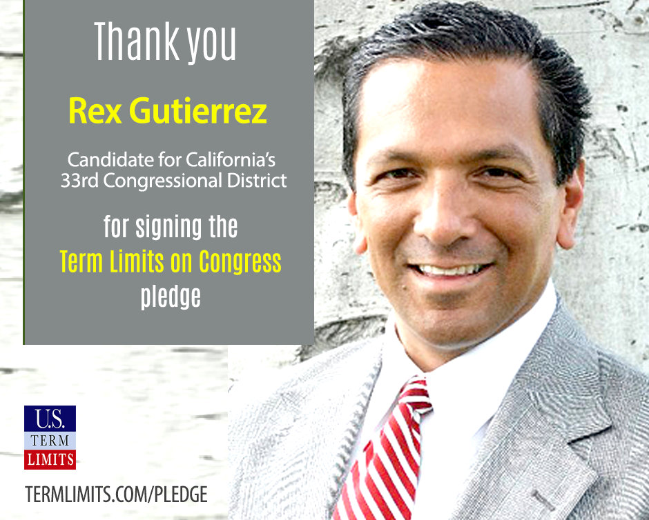 Washington D.C. – U.S. Term Limits (USTL), the leader in the non-partisan national movement to limit terms for elected officials, praises 2022 U.S. house candidate for California, Rex Guttierez (district 33), for signing the pledge for an amendment to term limit Congress. Guttierez is the first signer in this race.