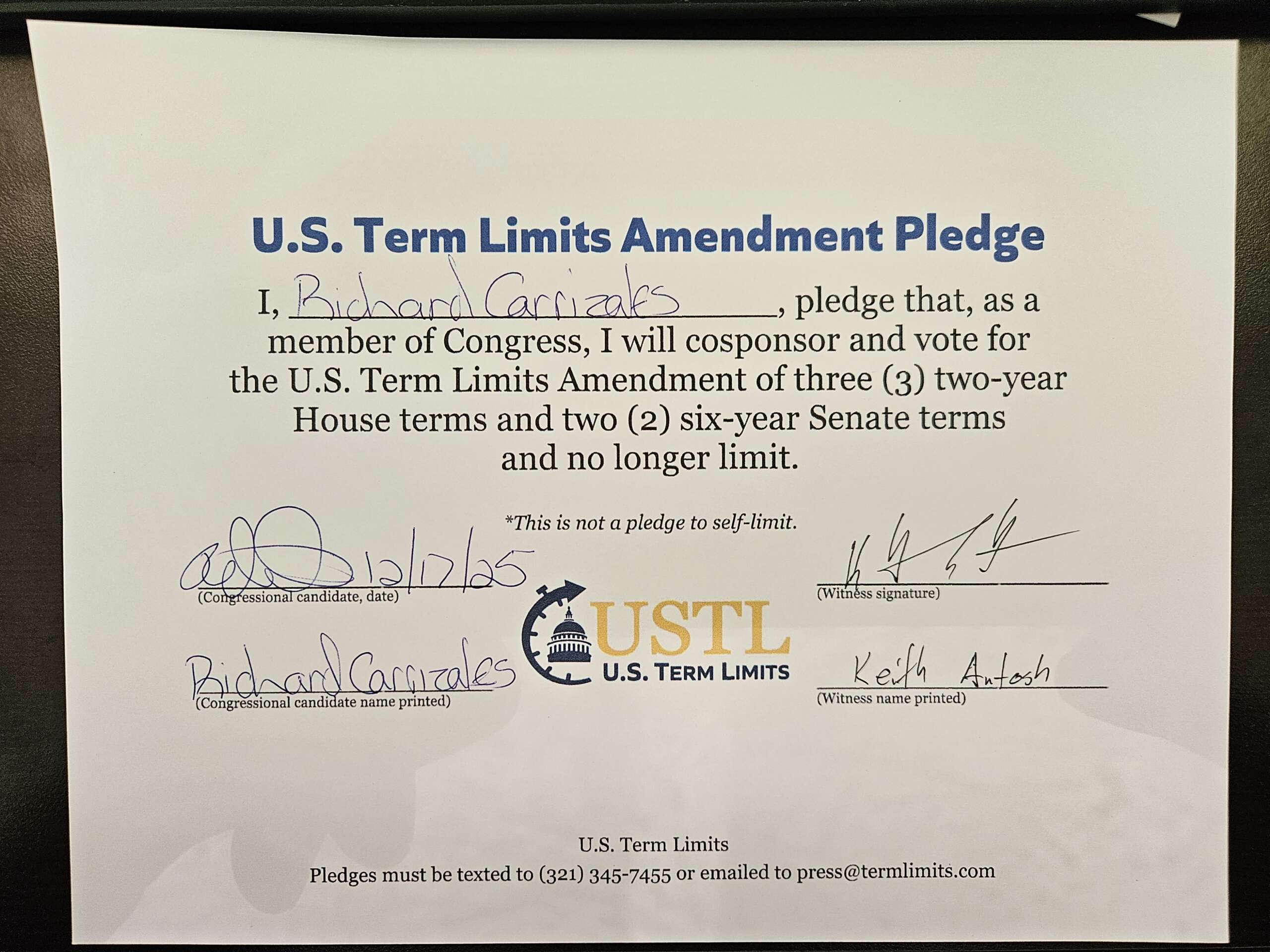 Richard Carrizales Pledges to Support Congressional Term Limits