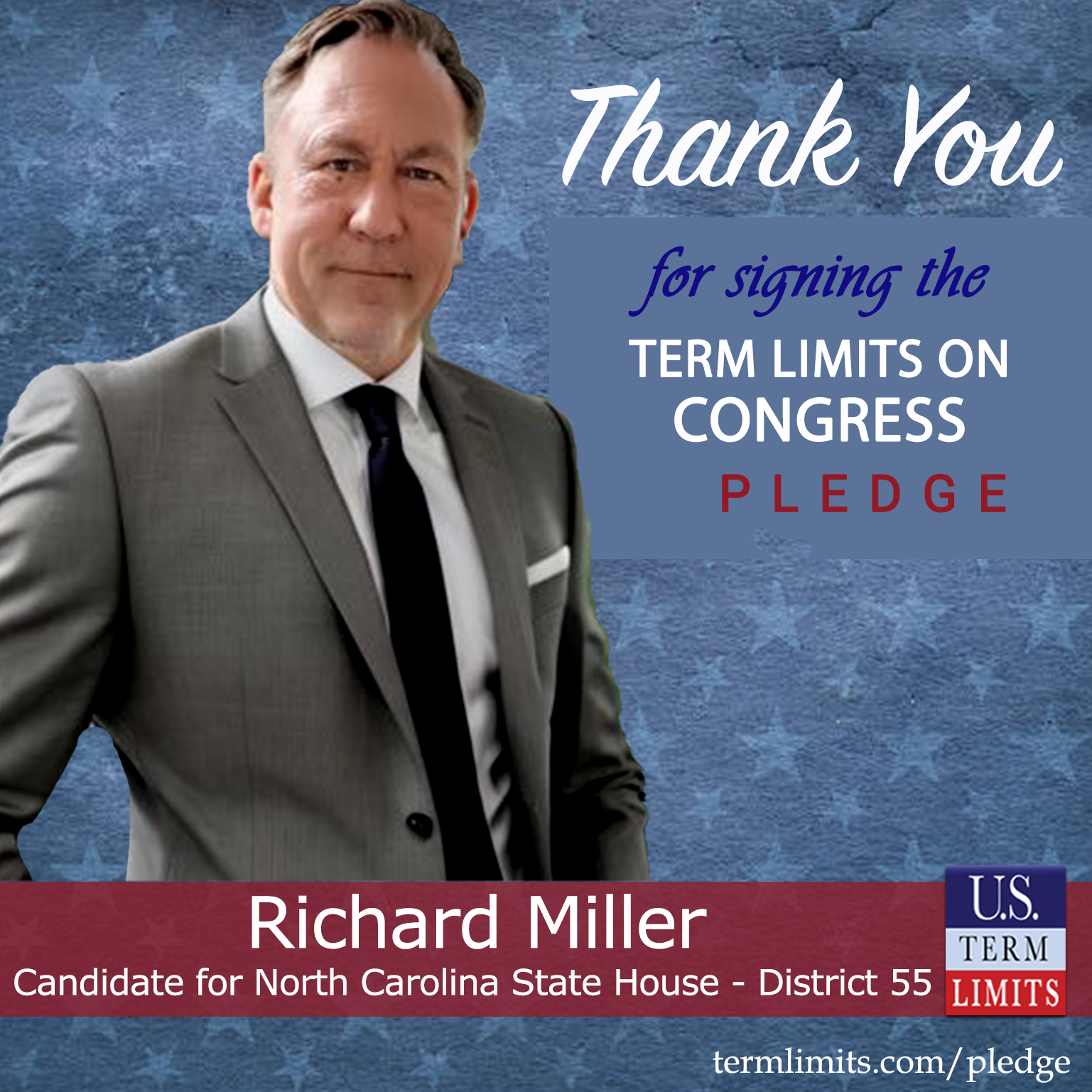 Raleigh, NC – U.S. Term Limits (USTL), the leader in the national, non-partisan movement to limit terms for elected officials, is gathering support from state lawmakers across the nation. Its mission is to get 34 states to apply for an amendment proposal convention specific to term limits on Congress. North Carolina state house candidate, Richard Miller (District 55), has committed support for term limits on Congress by signing the term limits convention pledge. Miller is the first signer in this race.