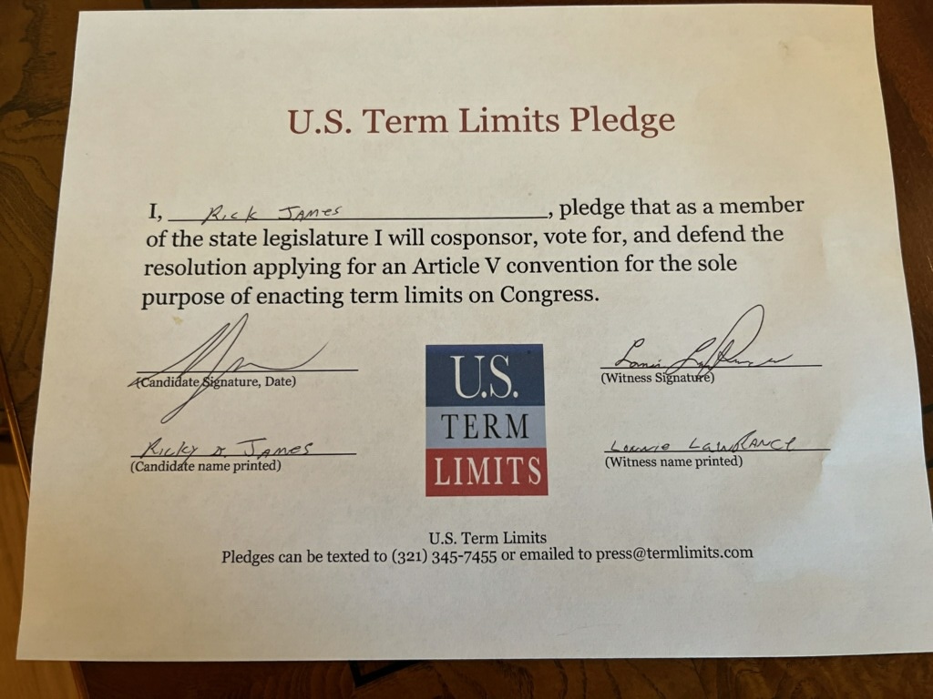 USTL President, Philip Blumel, commented on James’s pledge saying, “Rick’s strong support of term limits shows that there are individuals who are willing to listen to the majority of voters who want term limits. America needs a Congress that will be served by citizen legislators, not career politicians.”