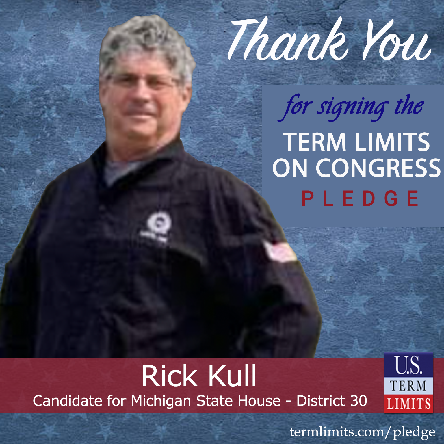 Bedford Township, MI – U.S. Term Limits (USTL), the leader in the national, non-partisan movement to limit terms for elected officials, is gathering support from state lawmakers across the nation. Its mission is to get 34 states to apply for an amendment proposal convention specific to term limits on Congress. Michigan state house candidate, Rick Kull (District 30), has committed support for term limits on Congress by signing the Term Limits Convention Pledge.