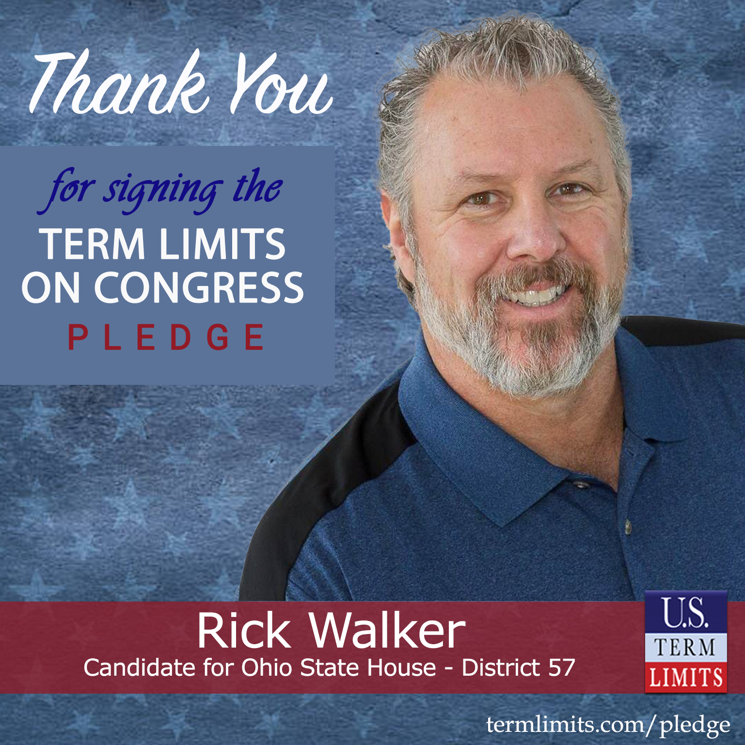 Mentor, OH – U.S. Term Limits (USTL), the leader in the national, non-partisan movement to limit terms for elected officials, is gathering support from state lawmakers across the nation. Its mission is to get 34 states to apply for an amendment proposal convention specific to term limits on Congress. Ohio state house candidate, Rick Walker (district 57), has committed support for term limits on Congress by signing the term limits convention pledge.