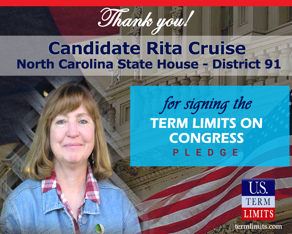 Washington, D.C. – U.S. Term Limits (USTL), the leader in the national, non-partisan movement to limit terms for elected officials, is gathering support from state lawmakers across the nation. Its mission is to get 34 states to apply for an amendment proposal convention specific to term limits on Congress. 2020 North Carolina house candidate Rita Cruise (district 91), has committed support for term limits on Congress by signing the Term Limits Convention pledge. The primary election is scheduled for March 3, 2020.