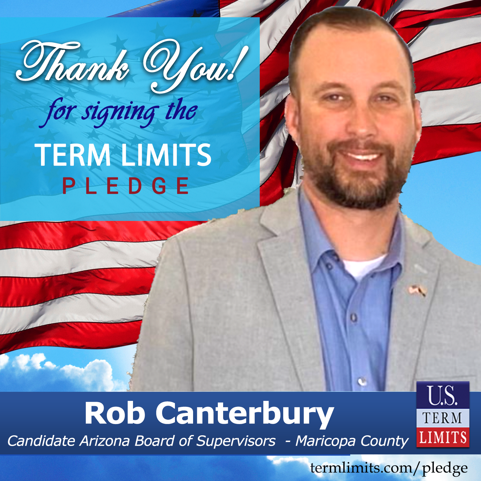 Surprise, AZ – 2024 Maricopa county board of supervisors candidate, Rob Canterbury, signed the U.S. Term Limits Pledge supporting term limits on all elected county council members. U.S. Term Limits praises Canterbury for his commitment to this important issue.