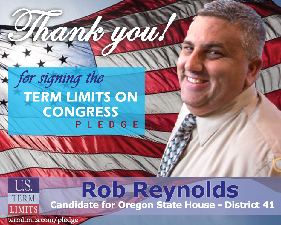 Portland, OR – U.S. Term Limits (USTL), the leader in the national, non-partisan movement to limit terms for elected officials, is gathering support from state lawmakers across the nation. Its mission is to get 34 states to apply for an amendment proposal convention specific to term limits on Congress. Oregon state house candidate, Rob Reynolds (district 41) has committed support for term limits on Congress by signing the Term Limits Convention pledge. Reynolds is the first signer in this race.