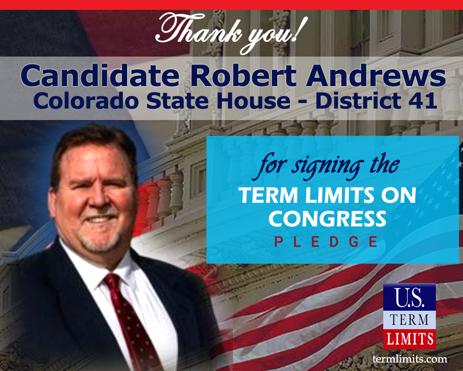 Washington, D.C. – U.S. Term Limits (USTL), the leader in the national, non-partisan movement to limit terms for elected officials, is gathering support from state lawmakers across the nation. Its mission is to get 34 states to apply for an amendment proposal convention specific to term limits on Congress. Colorado state house candidate, Robert Andrews (district 41), has committed support for term limits on Congress by signing the Term Limits Convention pledge. Andrews is the first signer in this race. The primary election is scheduled for June 30, 2020.