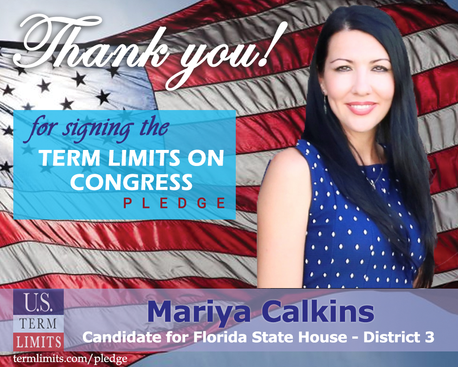 The U.S. Term Limits pledge is provided to candidates and members of state legislatures. It reads, “I pledge that, as a member of the state legislature, I will cosponsor, vote for, and defend the resolution applying for an Article V convention for the limited purpose of enacting term limits on Congress.”