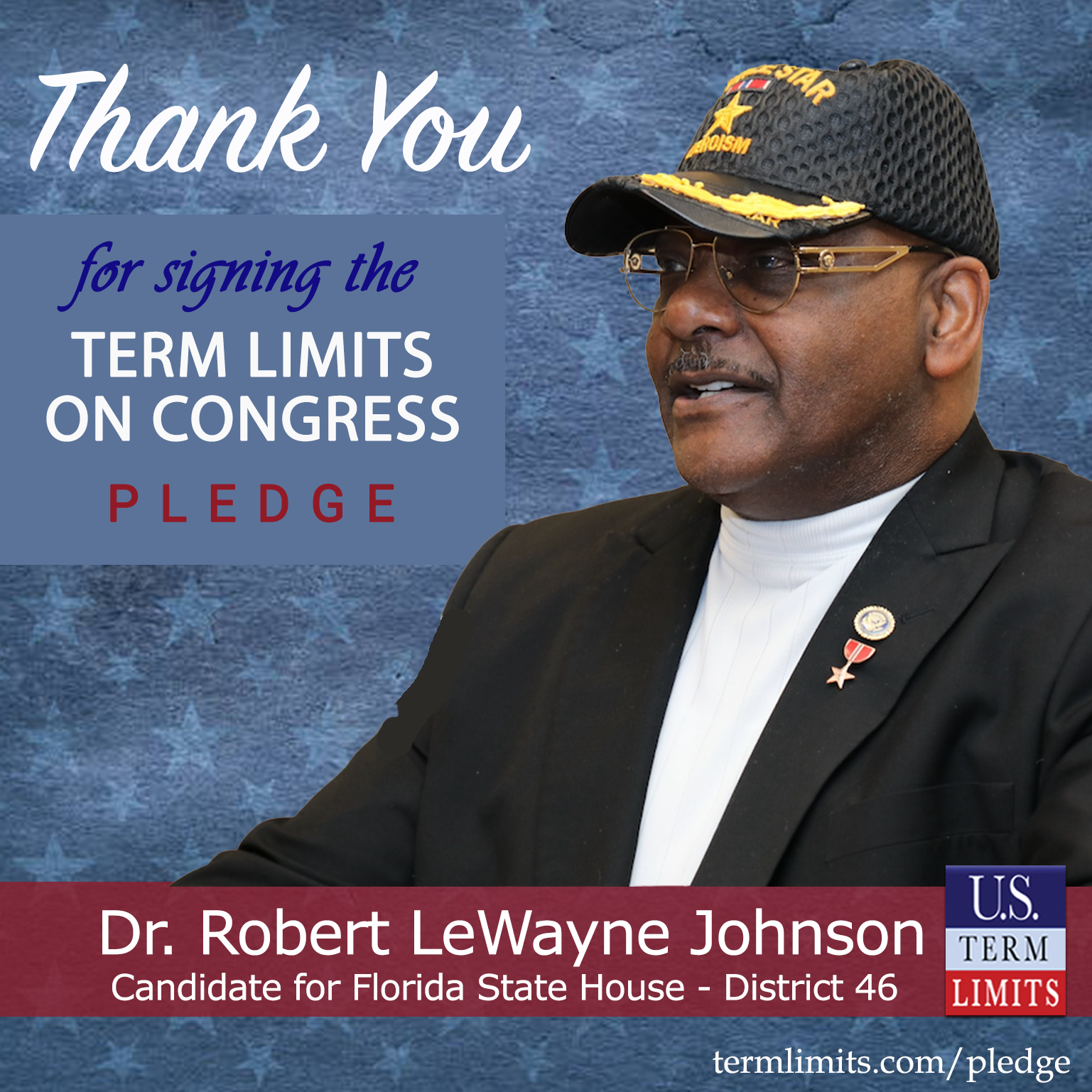 Kissimmee, FL – U.S. Term Limits (USTL), the leader in the national, non-partisan movement to limit terms for elected officials, is gathering support from state lawmakers across the nation. Its mission is to get 34 states to apply for an amendment proposal convention specific to term limits on Congress. 2026 Florida state house candidate, Robert Johnson (district 46), has committed support for term limits on Congress by signing the term limits convention pledge. Johnson is the first signer in this race.