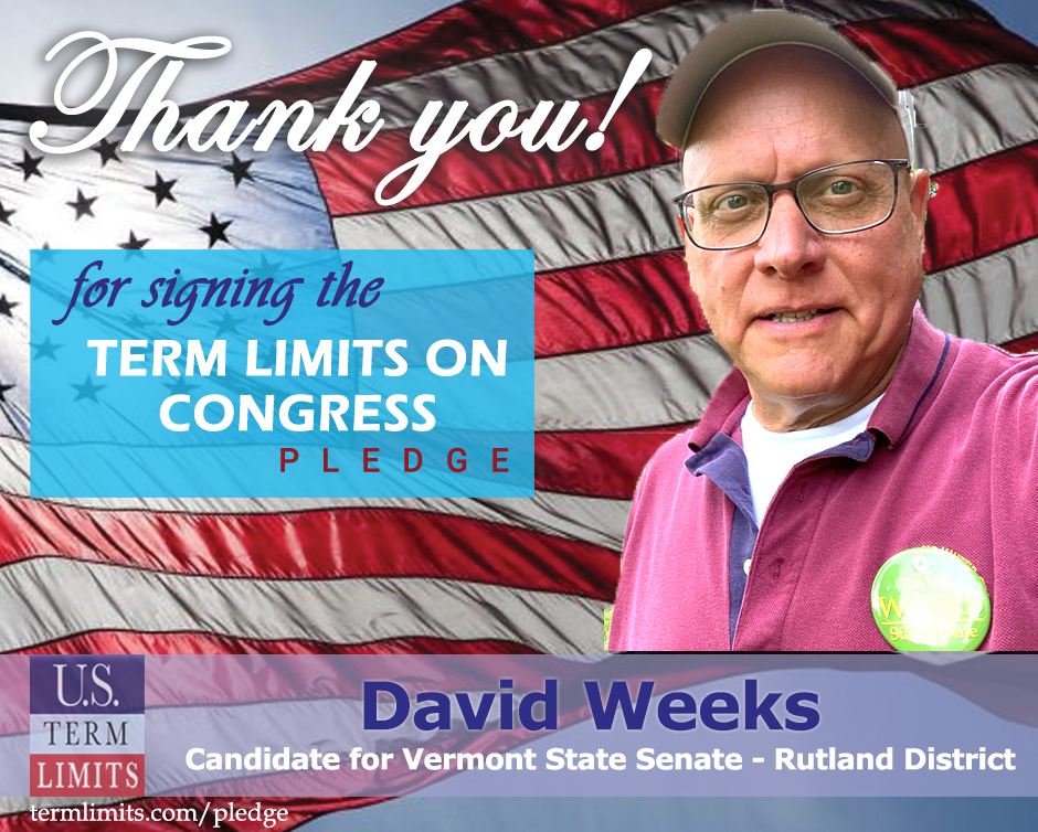 The U.S. Term Limits pledge is provided to candidates and members of state legislatures. It reads, “I pledge that, as a member of the state legislature, I will cosponsor, vote for, and defend the resolution applying for an Article V convention for the limited purpose of enacting term limits on Congress.”