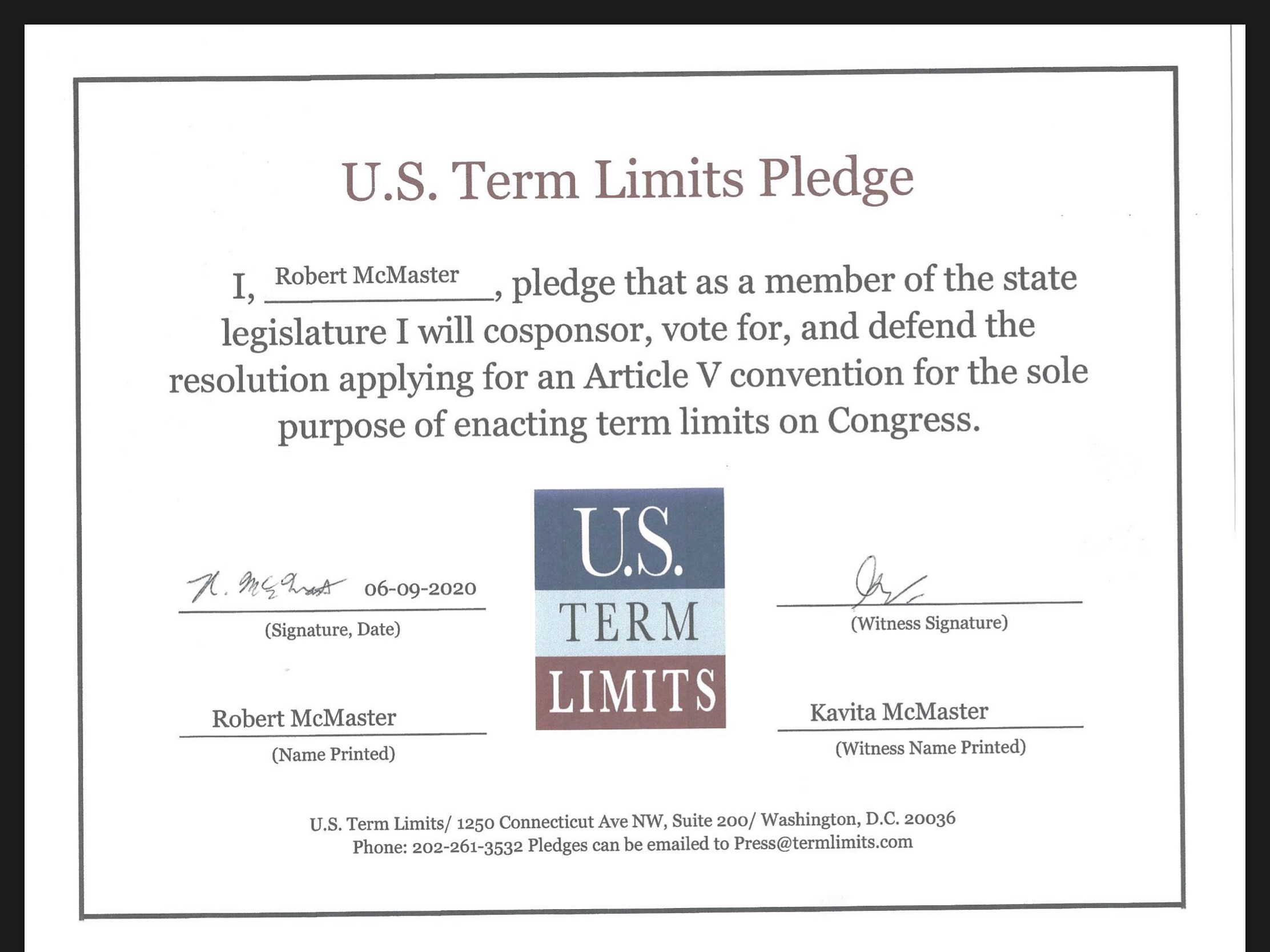 USTL President, Philip Blumel, commented on McMaster’s pledge saying, “Robert’s support of term limits shows that there are individuals who are willing to listen to the majority of voters who want term limits. America needs a Congress that will be served by citizen legislators, not career politicians.”
