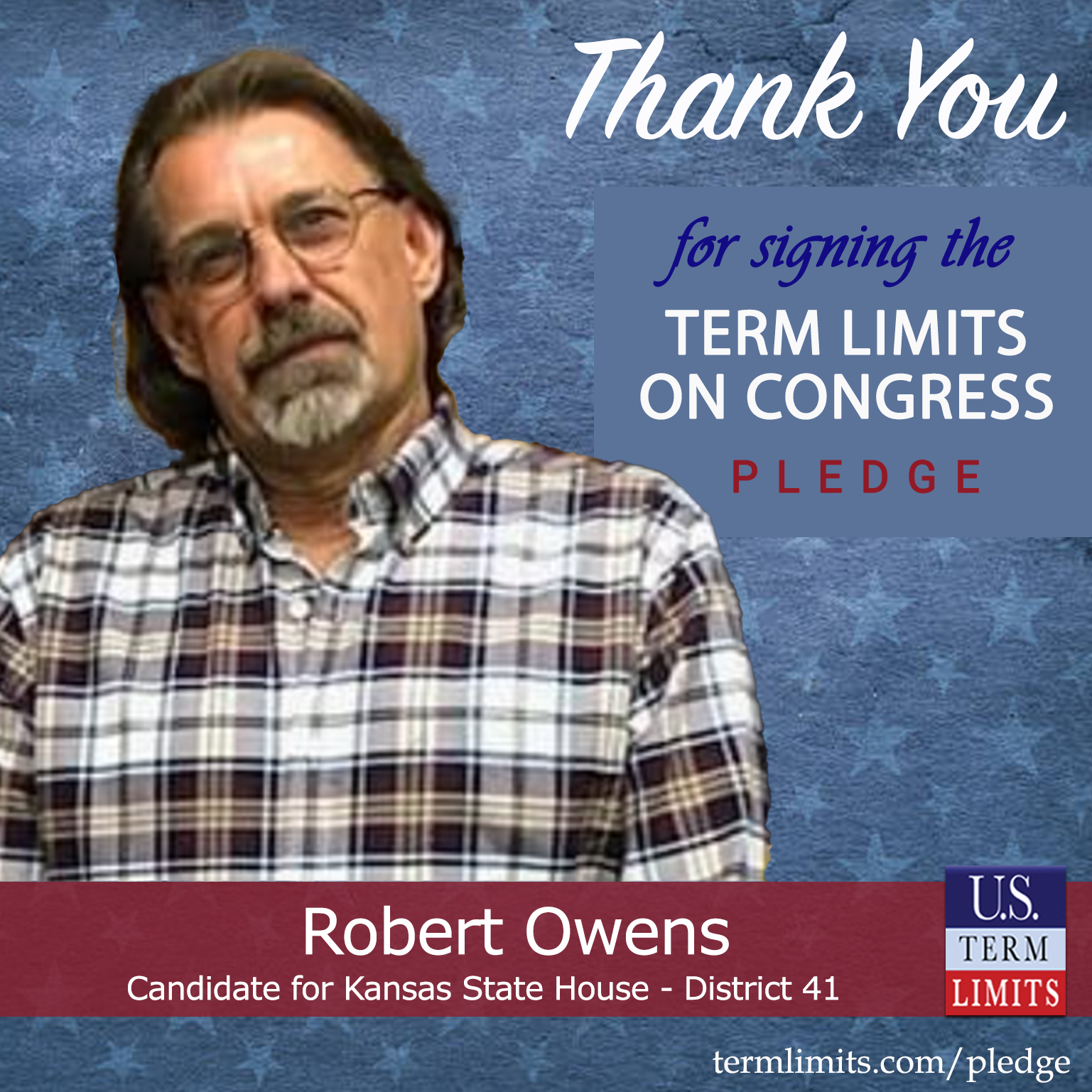 Fort Leavenworth, KS – U.S. Term Limits (USTL), the leader in the national, non-partisan movement to limit terms for elected officials, is gathering support from state lawmakers across the nation. Its mission is to get 34 states to apply for an amendment proposal convention specific to term limits on Congress. Kansas state house candidate, Robert Owens (District 41), has committed support for term limits on Congress by signing the term limits convention pledge. Previously, incumbent Rep. Pat Proctor also signed the pledge.