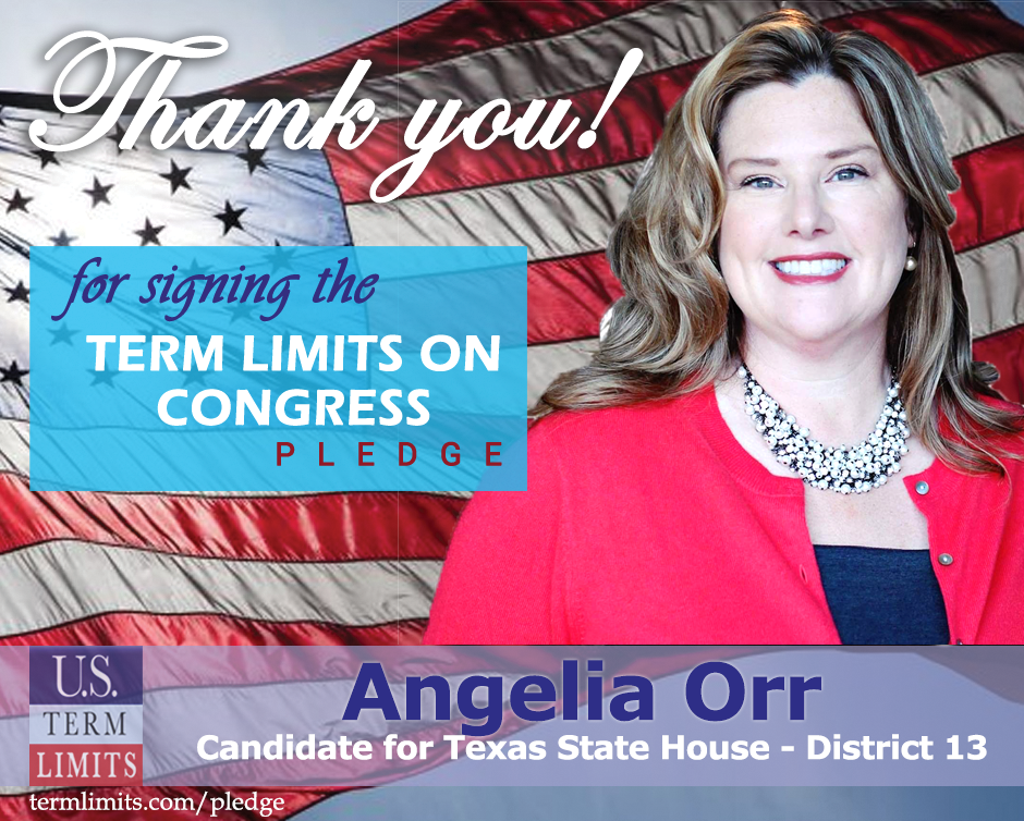 The U.S. Term Limits amendment pledge is provided to every announced candidate for federal office. It reads, “I pledge that as a member of Congress, I will cosponsor and vote for the U.S. Term Limits amendment of three (3) House terms and two (2) Senate terms and no longer limit.” The U.S. Term Limits constitutional amendment has been introduced in both the U.S. Senate by Senator Ted Cruz (SJR1) and the U.S. House by Representative Francis Rooney (HJR20).