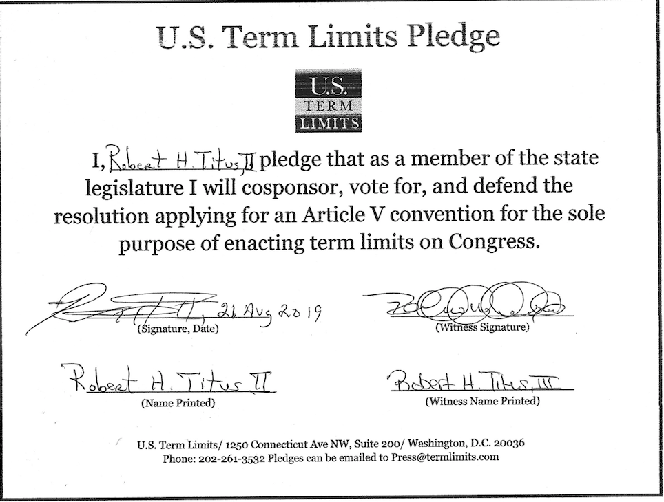 Robert Titus II Pledges to Support Congressional Term Limits
