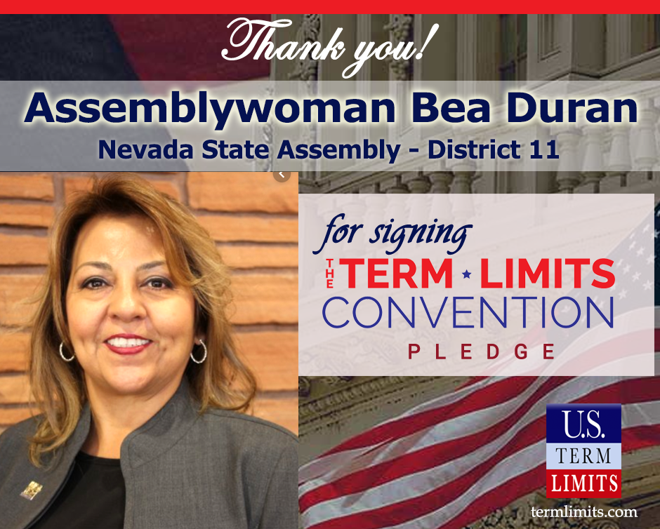 The U.S. Term Limits pledge is provided to candidates and members of state legislatures. It reads, “I pledge that, as a member of the state legislature, I will cosponsor, vote for, and defend the resolution applying for an Article V convention for the limited purpose of enacting term limits on Congress.”
