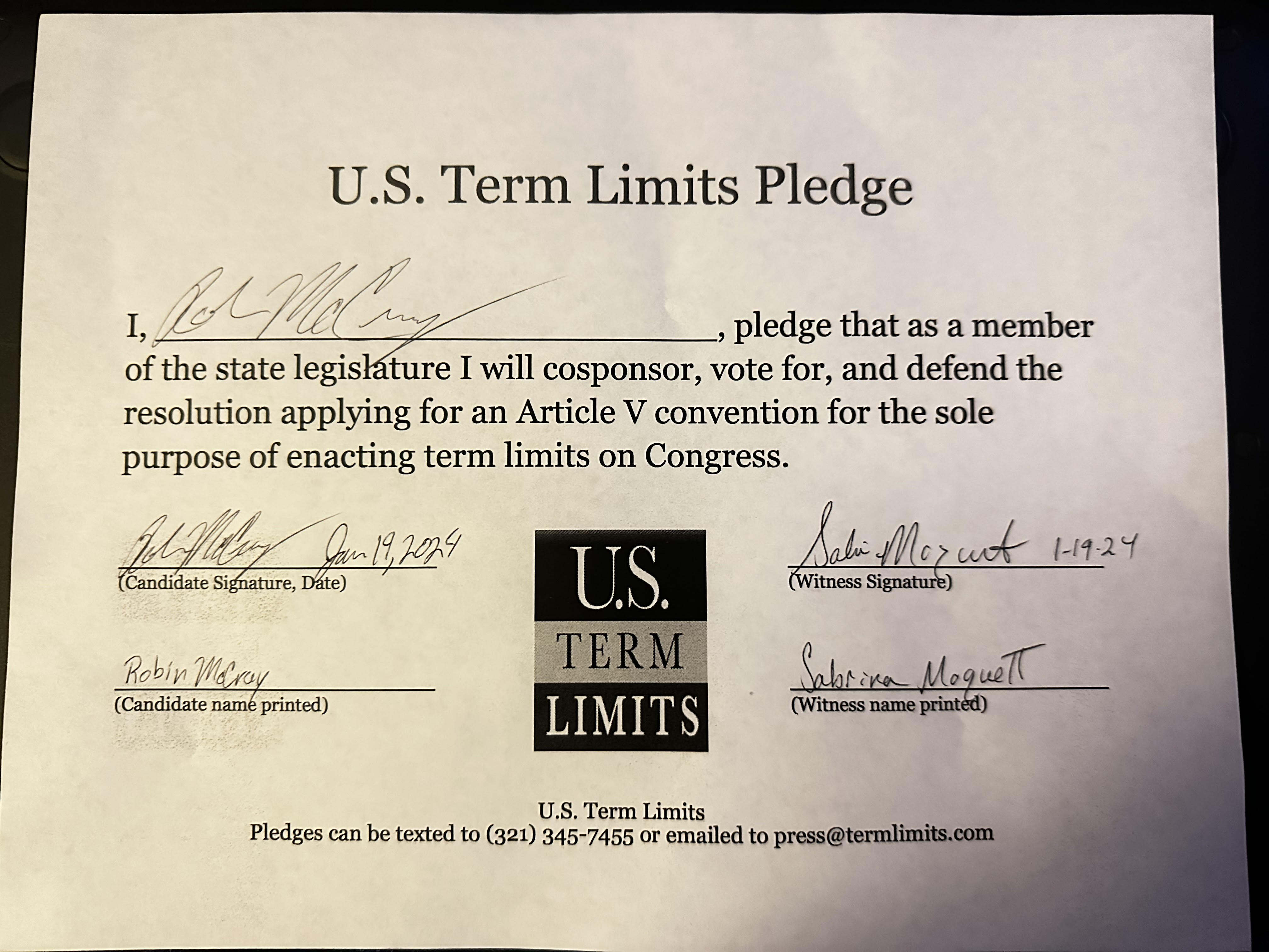 Robin McCray Pledges to Support Congressional Term Limits