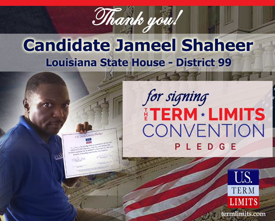 The U.S. Term Limits pledge is provided to candidates and members of state legislatures. It reads, “I pledge that, as a member of the state legislature, I will cosponsor, vote for, and defend the resolution applying for an Article V convention for the limited purpose of enacting term limits on Congress.”